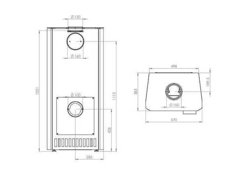 Product: Houtkachel Afmeting: 383x570x1252 Conditie: nieuw Specificaties: vermogen (kW): 6 aansluiting (mm): 150 gewicht (Kg): 147 rendement (%): 80,5 aansluiting: bovenaansluiting & achteraansluiting vrijstaand vuurzicht: Front