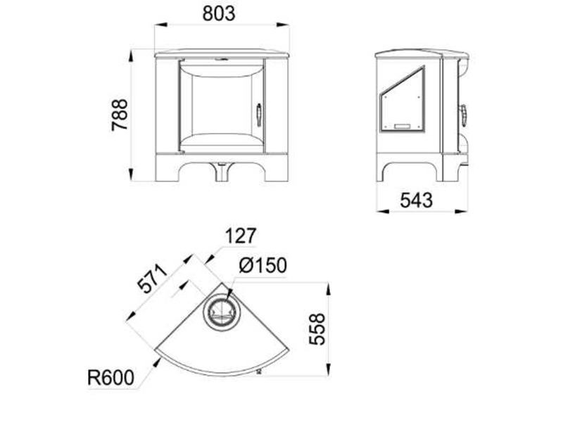 Merk: Bronpi Product: Houtkachel Afmeting: 543x803x788 Conditie: nieuw Specificaties: vermogen (kW): 11,5 aansluiting (mm): 150 gewicht (Kg): 167 rendement (%): 78 aansluiting: bovenaansluiting vrijstaand vuurzicht: Front