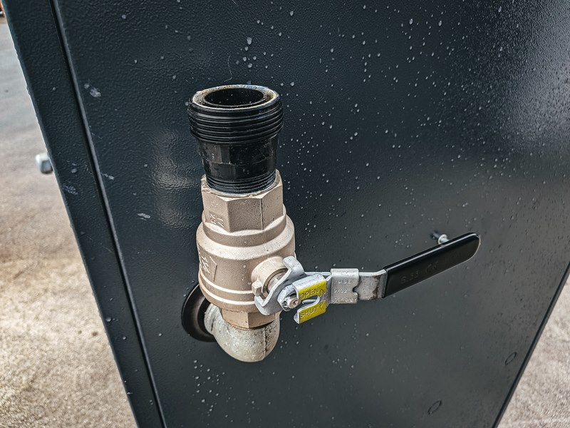 Merk: Atlas Copco Product: Oliegeïnjecteerde schroefcompressor BouwJaar: 2018 Specificaties: Basiskenmerken Serienummer: AP1585079 Technische gegevens Max. werkdruk (MAWP) : 7,5 bar (109 psi, 0,75 MPa) Capaciteit (Qv) : 99,2 l/s (210,2 cfm, 5,95 m³/min) Motorvermogen (Pmotor) : 30 kW (41 pk) Voltage: 400 V, 50 Hz, 3 Ph Massa: 626 kg (1.380 lb) Deze objecten zijn oorspronkelijk in opdracht van Rijkswaterstaat geplaatst bij de sluis. Hun functie was om ijsvorming in de winter tegen te gaan, zodat de sluisdeuren bij hoog- en laagwater goed konden blijven functioneren. Later is de sluis overgenomen door de Provincie Overijssel. Daarmee kwam deze ijswerende functie te vervallen en zijn de objecten overbodig geworden.