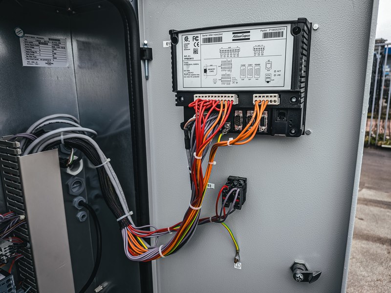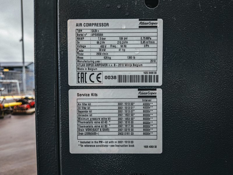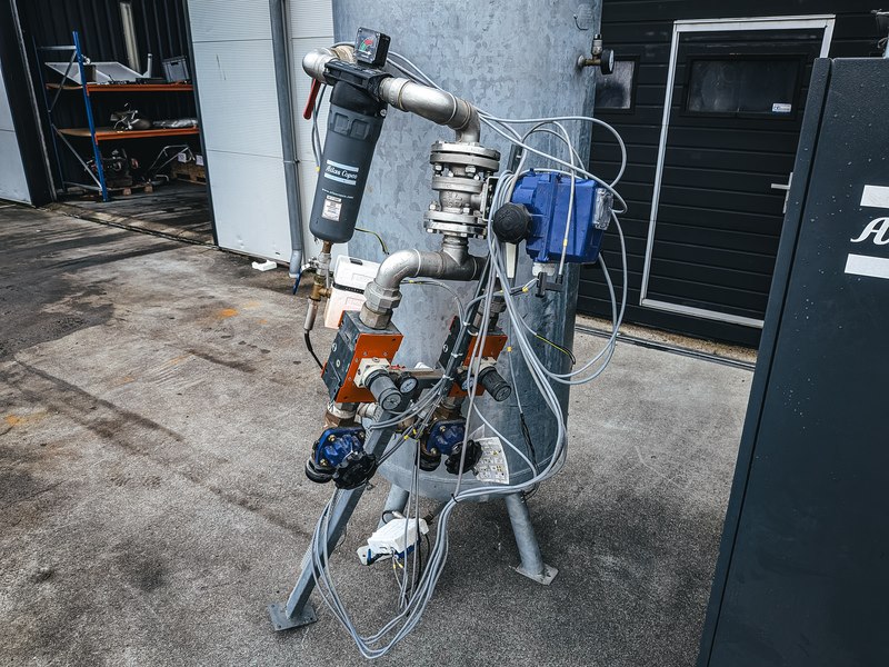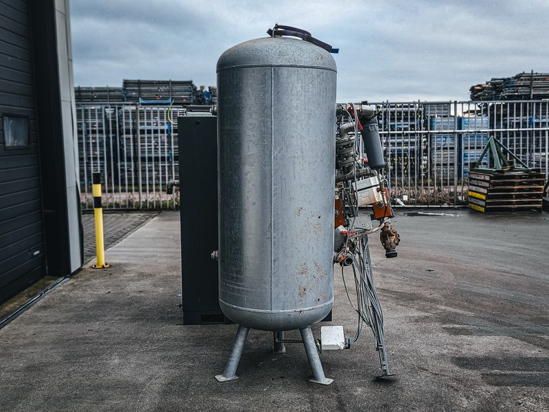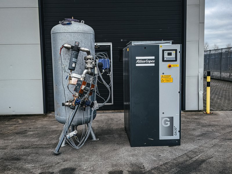 Merk: Atlas Copco Product: Oliegeïnjecteerde schroefcompressor BouwJaar: 2018 Specificaties: Basiskenmerken Serienummer: AP1585084 Technische gegevens Max. werkdruk (MAWP) : 7,5 bar (109 psi, 0,75 MPa) Capaciteit (Qv) : 99,2 l/s (210,2 cfm, 5,95 m³/min) Motorvermogen (Pmotor) : 30 kW (41 pk) Voltage: 400 V, 50 Hz, 3 Ph Massa: 626 kg (1.380 lb) Deze objecten zijn oorspronkelijk in opdracht van Rijkswaterstaat geplaatst bij de sluis. Hun functie was om ijsvorming in de winter tegen te gaan, zodat de sluisdeuren bij hoog- en laagwater goed konden blijven functioneren. Later is de sluis overgenomen door de Provincie Overijssel. Daarmee kwam deze ijswerende functie te vervallen en zijn de objecten overbodig geworden.