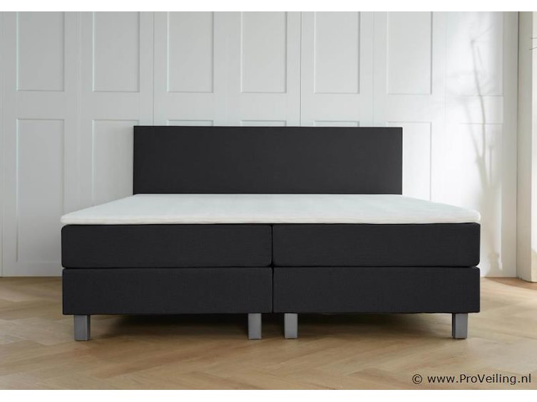 15651 Vlakke boxspring Turijn. Afmeting 140 x 200, Antraciet. Het hoofdbord is even breed als het bed (voorbeeld 180x100x8cm) de onderboxen zijn hard. Het matras bestaat uit 2 stuks. het matras is 7zone pocket geveerd. de topper is ca 5cm dik en is van het materiaal comfort schuim. de pootjes zijn grijs vierkant en 12 cm hoog.