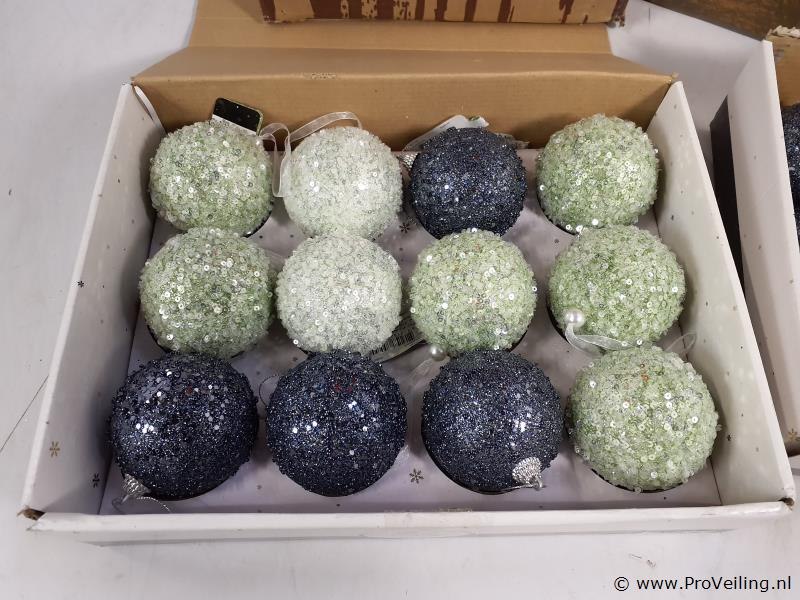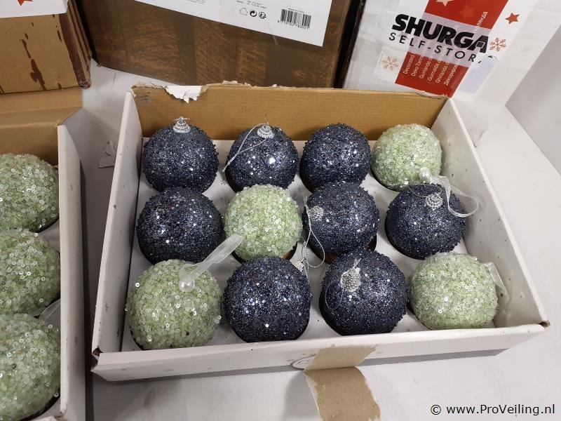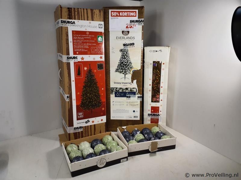 Partij kerstdecoratie o.a. kunstkerstbomen en kerstballen