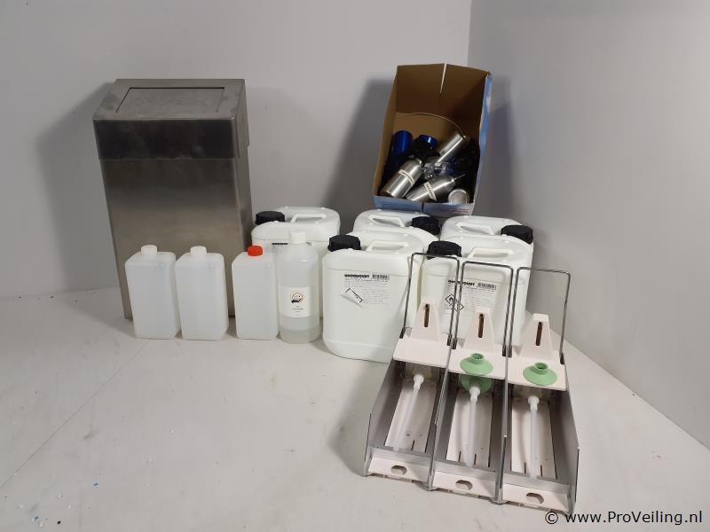 Partij diversen o.a. afvalbak & desinfectiemateriaal; zie afbeeldingen.