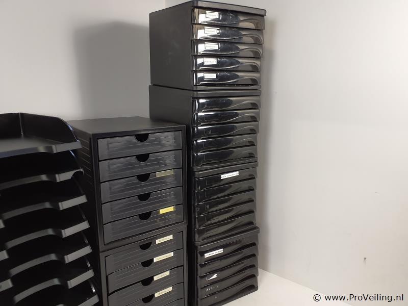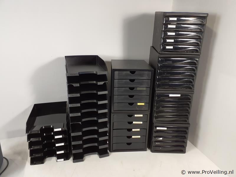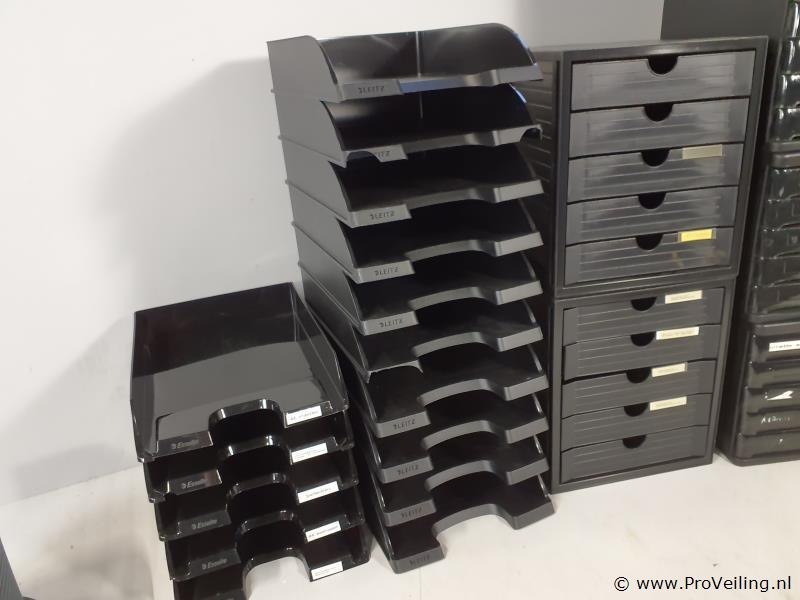 Partij kantoorbenodigdheden bestaande uit o.a. archiveer/postbakken; zie afbeeldingen.