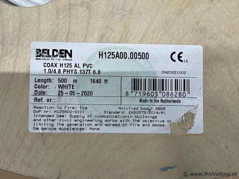 Coax kabel op haspel: merk Belden, type H125A00.00500.