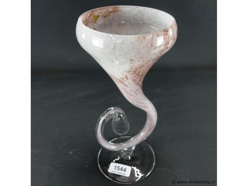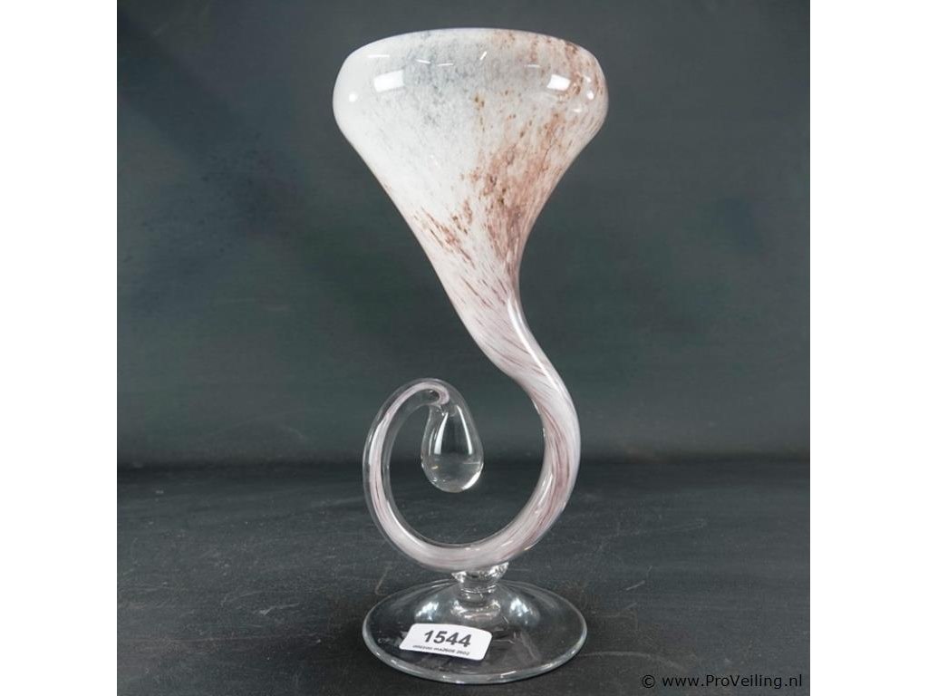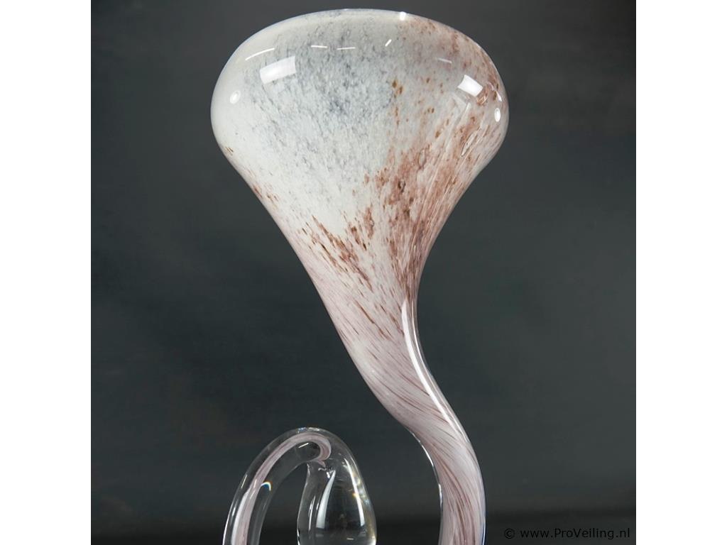 Mondgeblazen glazen hoornvaas op voet h 30 cm