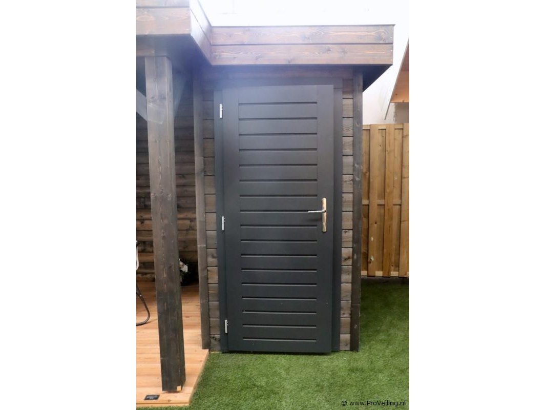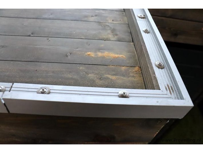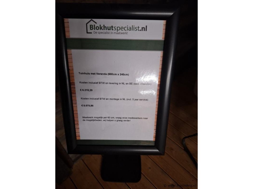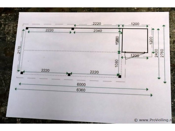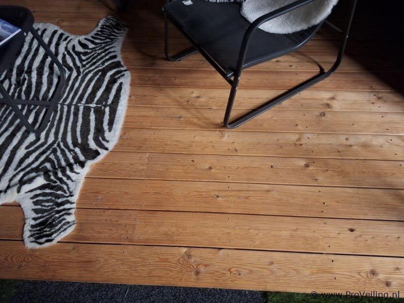 Tuinhuis (Vuren) met veranda; afmetingen ca. 600x240cm; voorzien van Siberisch Lariks geribbelde vlonderplanken; door koper zelf vakkundig te demonteren op aanwijzing van ProVeiling.