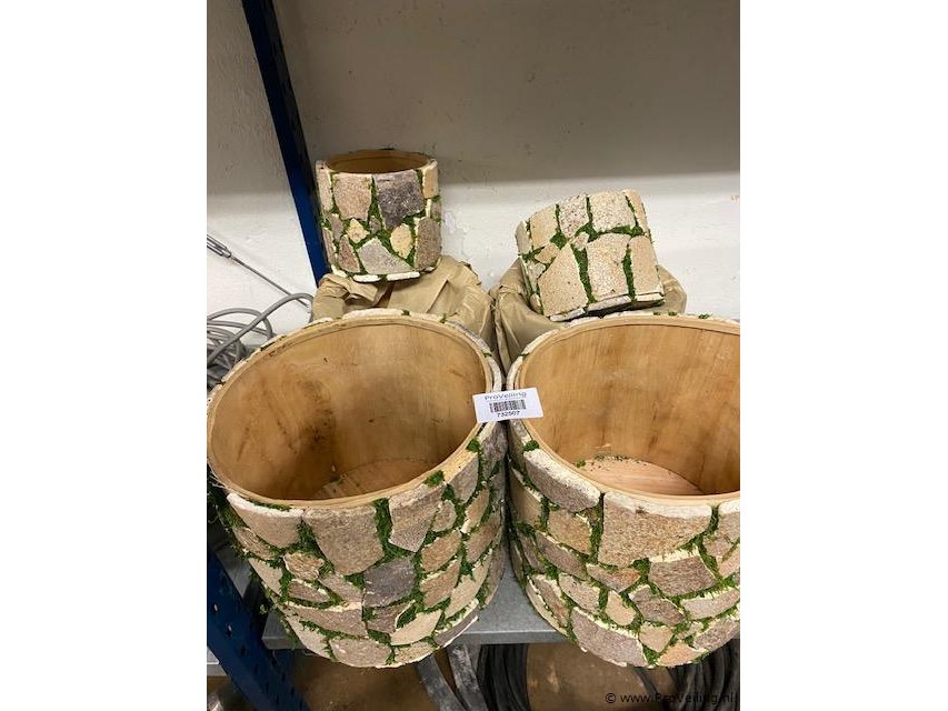 Partij bloembakken rond beplakt met steen - 6 stuks