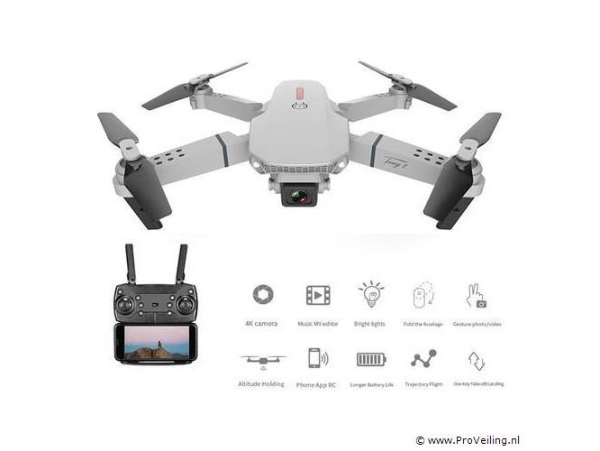Drone met 4k camera & 2 batterijen - Grijs: Deze drone bevat naast de gebruikelijke onderdelen nog 1 extra batterijen dus in totaal 2 batterijen zodat je drone langer kan vliegen in totaal ongeveer 20 min. De drone heeft een 4k camera. De drone bestuur je met de bij geleverde afstandsbediening. Daarnaast kan je de drone ook besturen via je telefoon en mee kijken met de beelden die de ingebouwde camera ziet. De app is gratis te downloaden op elke mobiele telefoon Android en Apple. De pocket drone heeft een reikwijdte van 80 tot 100 meter. Deze drone wordt kant-en-klaar geleverd en is dus ready to fly voor zowel in- als outdoor vluchten De drone heeft opvouwbare armen waardoor hij slechts 12.5x7.5x5 cm groot is wanneer hij is opgevouwen. De drone weegt 250 gram. Inhoud etui: Drone met 4k camera, 2x batterij, oplaadkabel, afstandsbediening, beschermers voor de propellers.