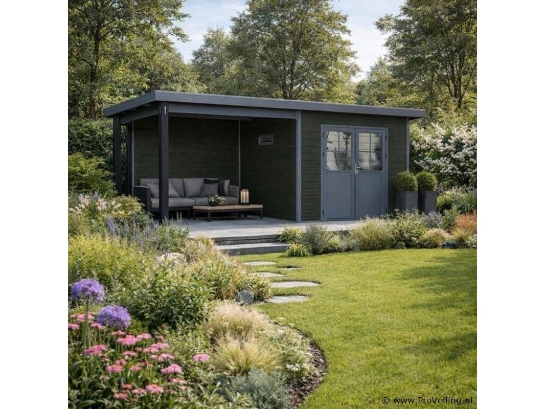 Kunststof tuinhuis zwart met overkapping geeft je afgesloten bergruimte én een fijne, droge plek om buiten te zitten. Kenmerken Afmeting: 5600 x 3300 x 2470 mm Combinatie van bergruimte en overkapping Ruim model voor opslag en buitengebruik Compleet bouwpakket met voorgezaagde onderdelen Genummerde panelen voor overzicht tijdens de montage Grijs aluminium frame en deuren voor een stabiele constructie Strakke uitstraling Slimme details en duidelijke handleiding, geschikt voor doe-het-zelvers