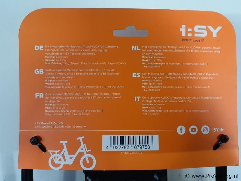 I:sy voordrager met KLICKfix. Monkey load ready Aluminium. Kleur zwart.