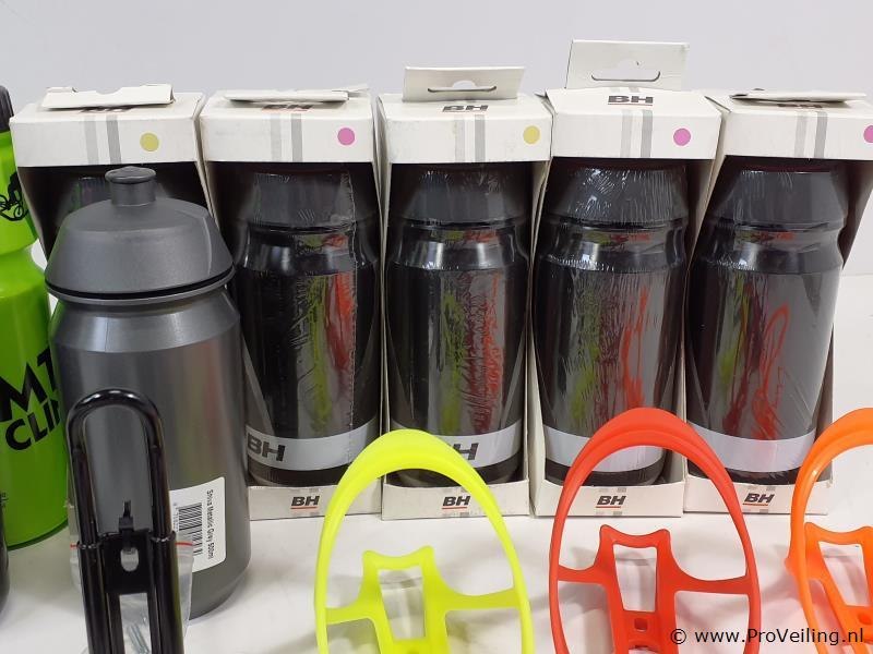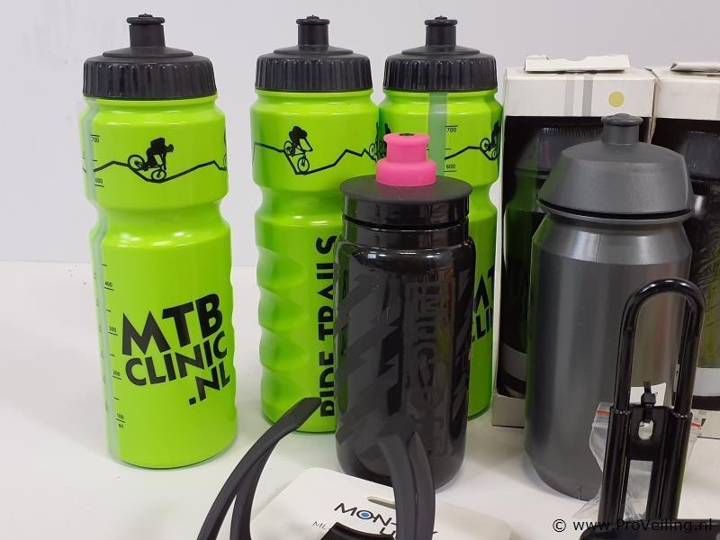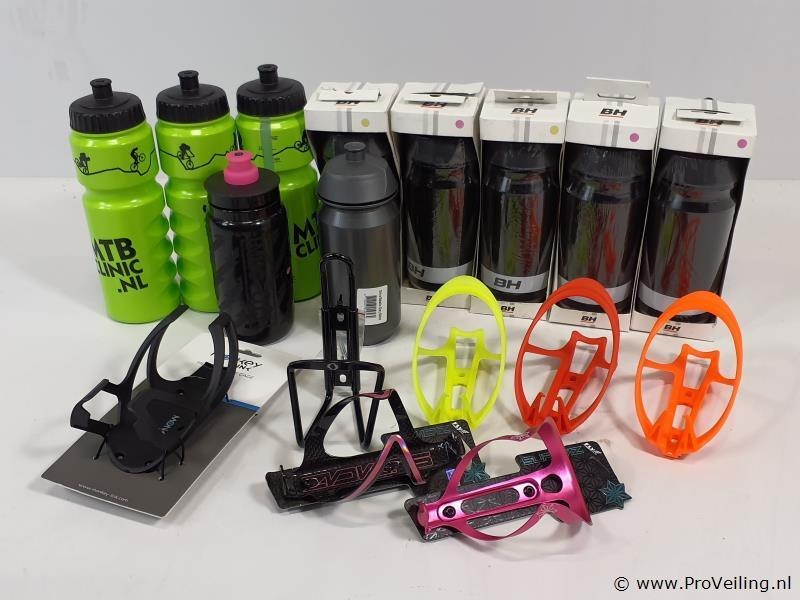 Partij bidons en bidonhouders o.a. flycage, monkey link en bh