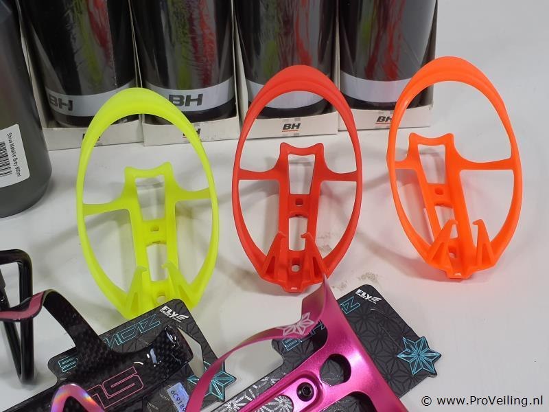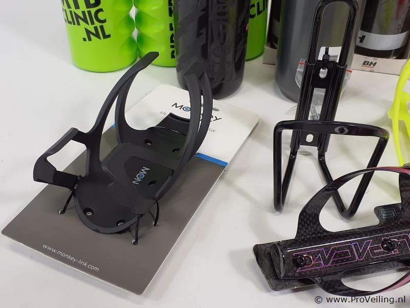 Bidons en bidonhouder o.a. Flycage, monkey link en bh; nieuw; zie afbeeldingen.