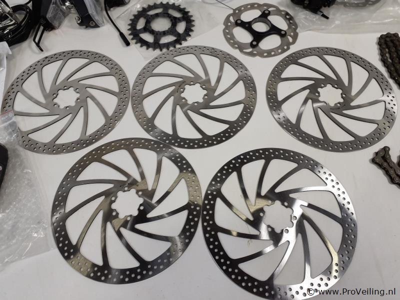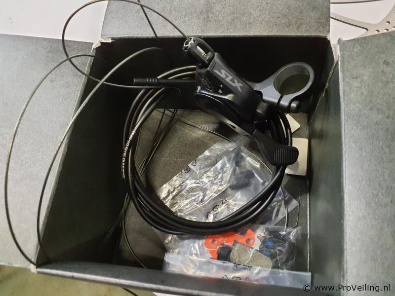 Partij met o.a. nieuwe magura en Shimano onderdelen. Nieuwe Deore xt onderdelen rapidfire plus 12s 5x Magura remschijven Shimano remklauw met schijf 5x Nieuwe led koplampen 2x nieuwe fiets ketting waar van 1 ook een achter tandwiel heeft. Doos met het nieuwe bouten Achter voor e-bike accu.