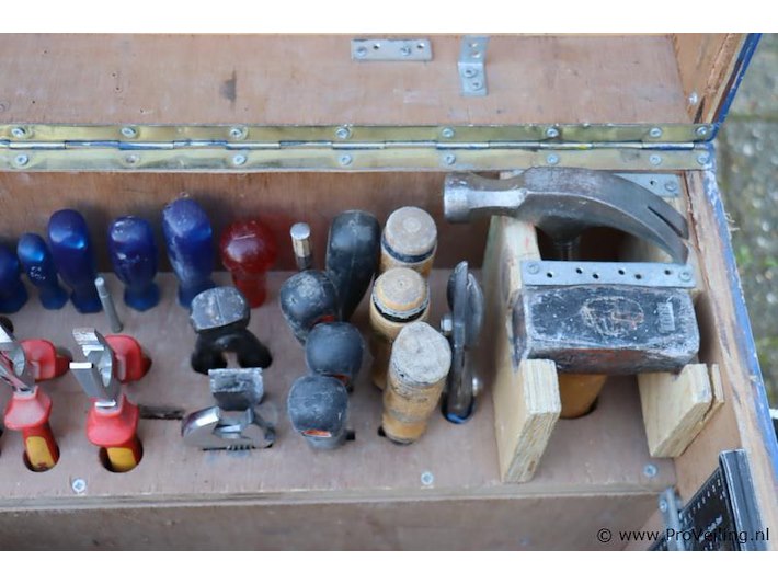 O.a. tangen, schroevendraaier & handzagen; afmeting kist ca. 60x40x54cm; zie afbeeldingen.