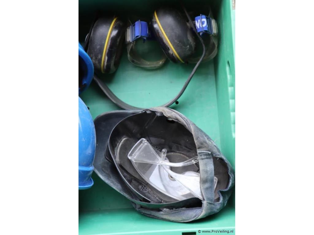 Partij persoonlijke beschermingsmiddelen in kunststof krat