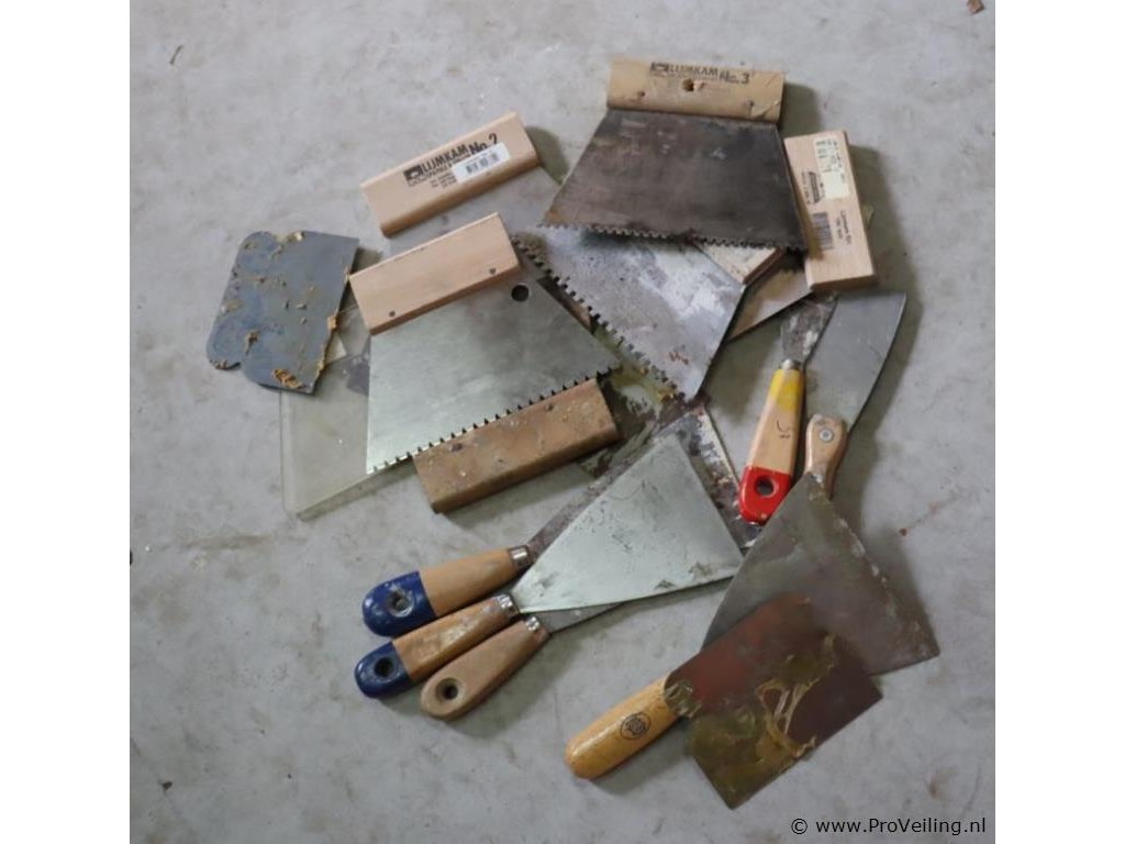 Partij plamuurmessen & Lijmkammen; zie afbeeldingen.