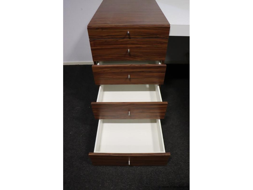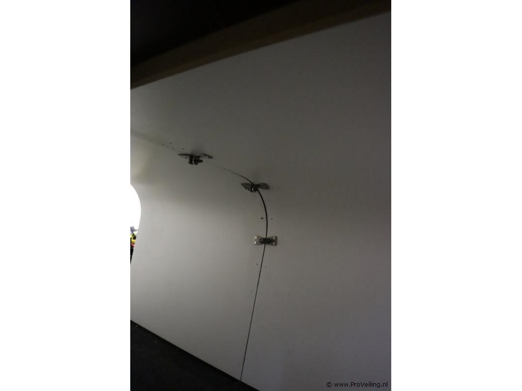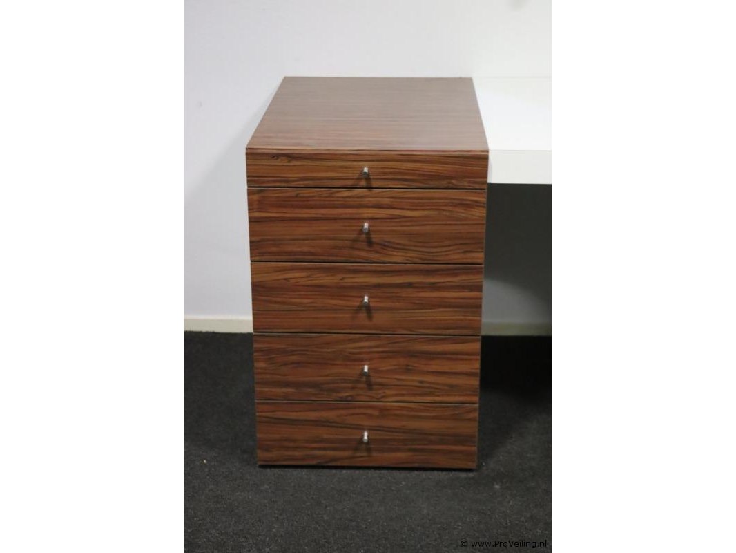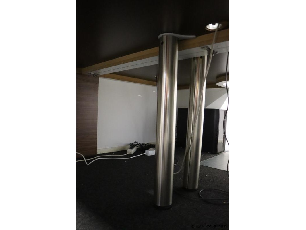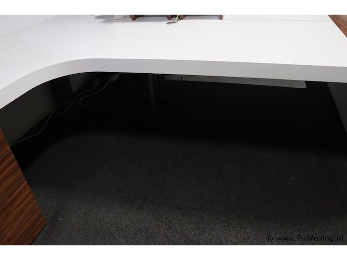 ; afmetingen ca. 80x250x75cm; lengte hoek is totaal ca. 177cm; onderkant blad ca. 68cm (h); ladeblok ca. 50x77x75cm; door koper zelf vakkundig te demonteren op aanwijzing van ProVeiling. Excl. inhoud.