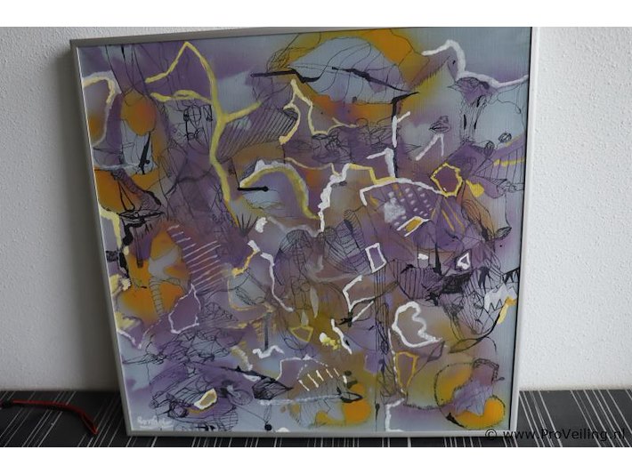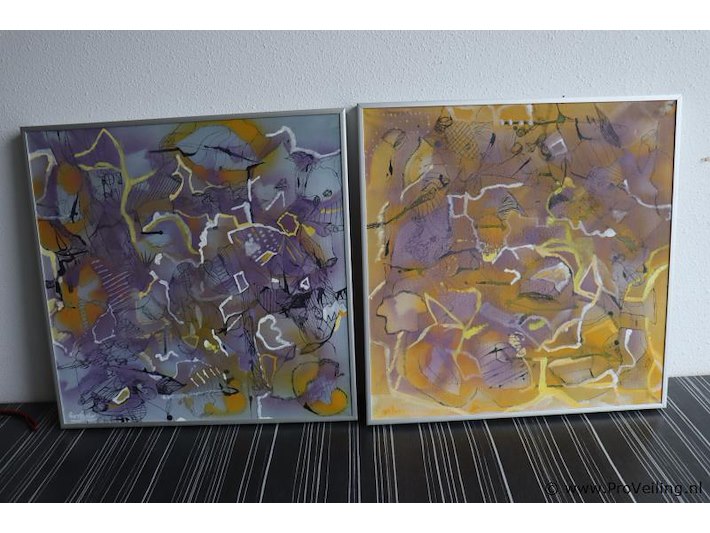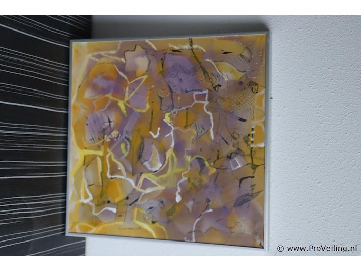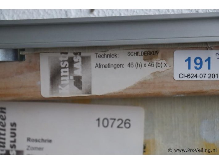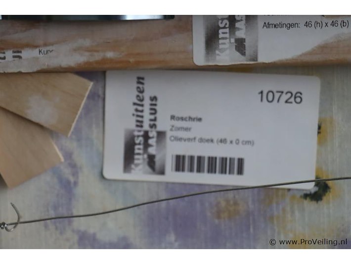 Kunstuitleen Maassluis Olieverfdoek "Zomer" in lijst; afmetingen ca. 46x3.5x46cm; aantal 2 stuks; zie afbeeldingen.