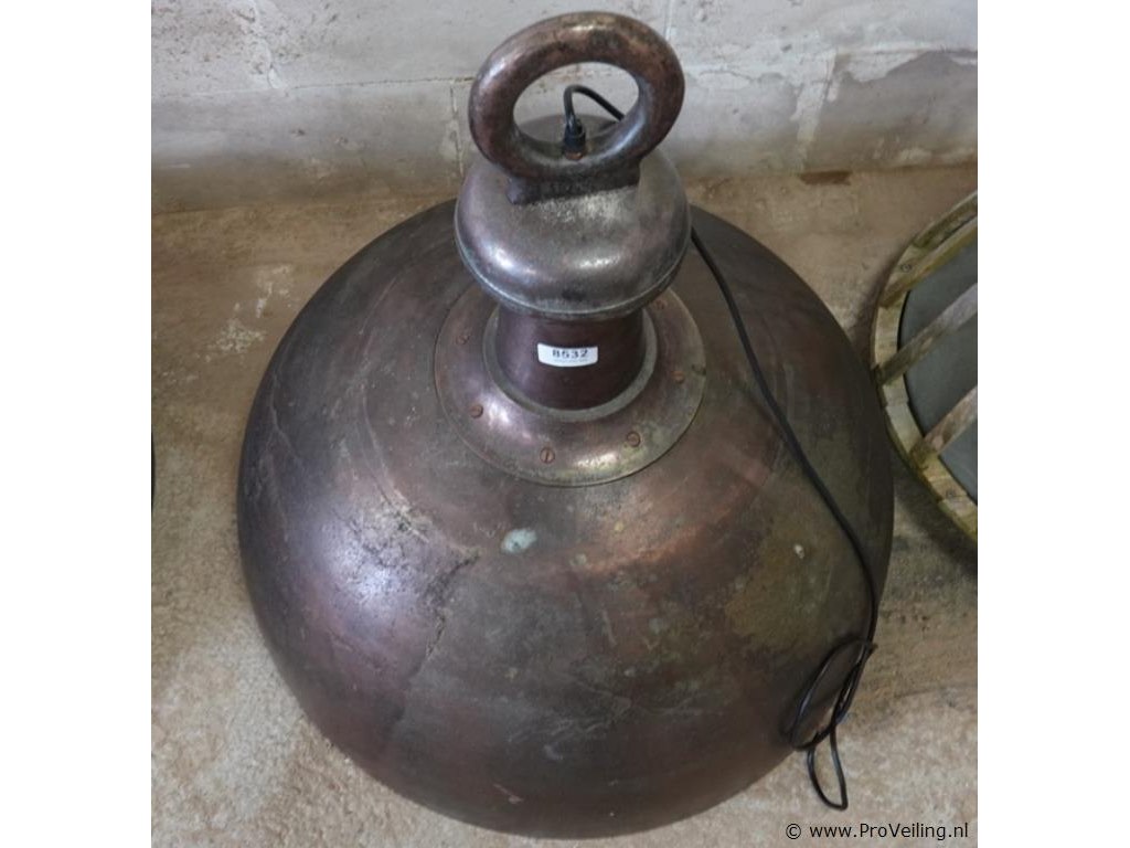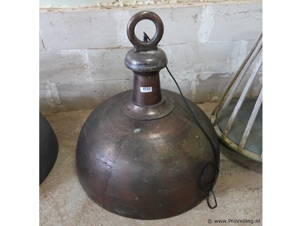 Grote zware industrieel vormgegeven bronzen hanglamp