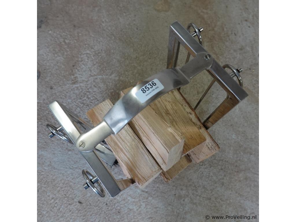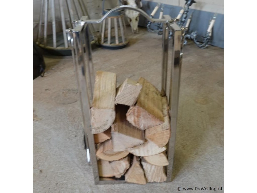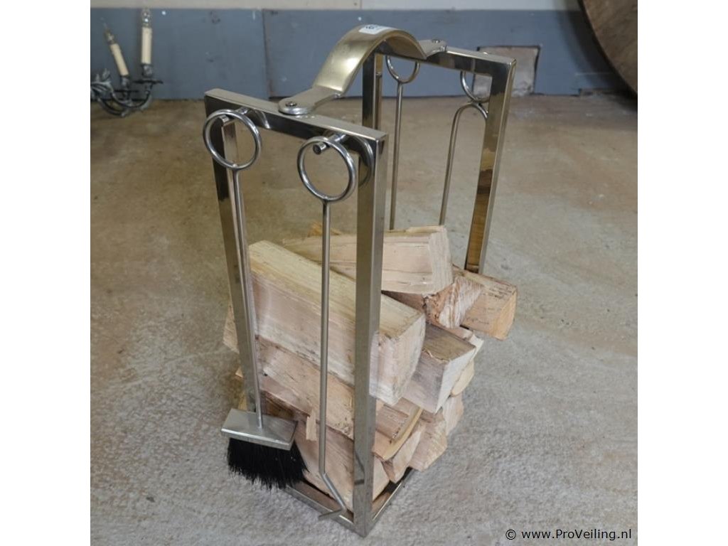 Rivièra Maison moderne roestvrij stalen houtblokkenstandaard met openhaardgereedschap. Incl. houtblokken. H70cm/B30cm/. Verwachte opbrengst € 25,00 - € 50,00. Lees a.u.b. ook de extra veilinginformatie voor deze veiling. G-E-E-N transport of bezorging door Proveiling mogelijk. Eventueel transport of bezorging alleen door u zelf te regelen via b.v. www.brenger.nl .