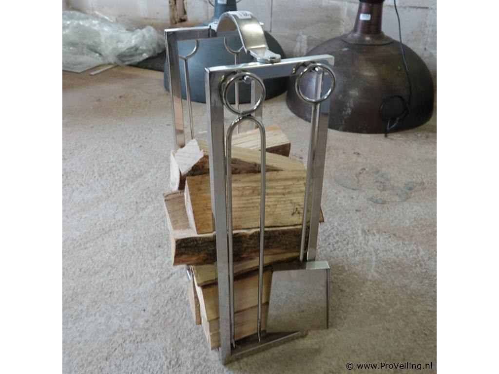 Rivièra maison moderne roestvrij stalen houtblokkenstandaard met openhaardgereedschap