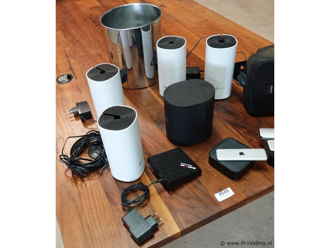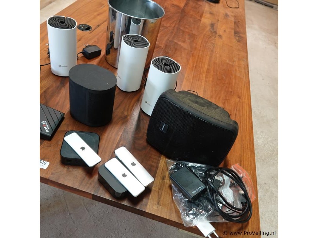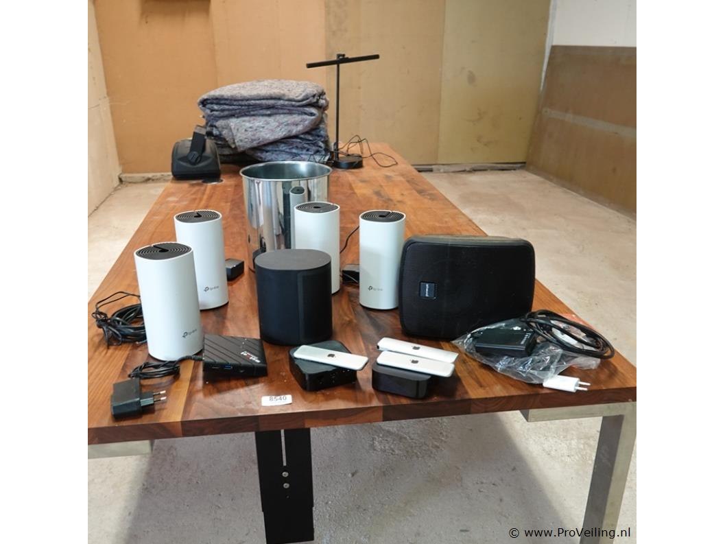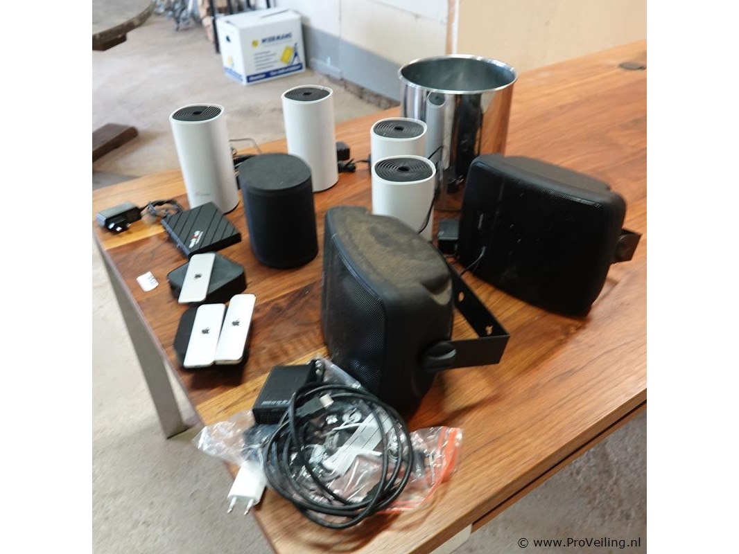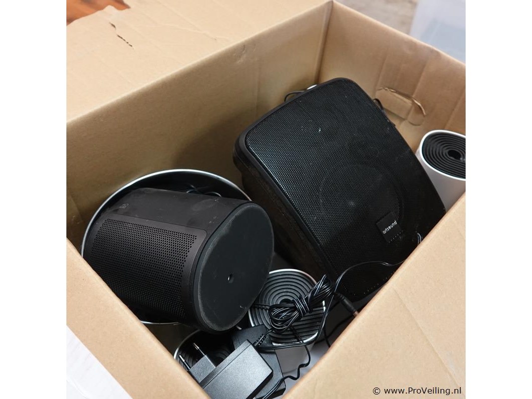 Diverse apparatuur en buitenboxen in verhuisdoos