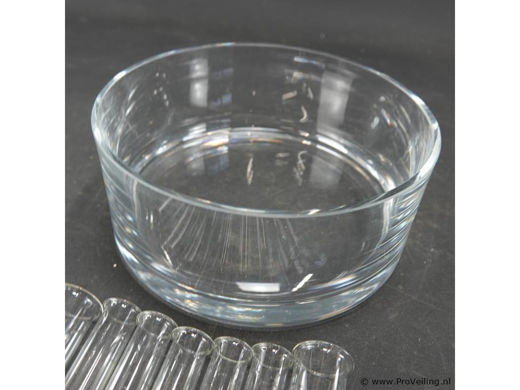 Dikwandige schaal met bloemampulvaasjes