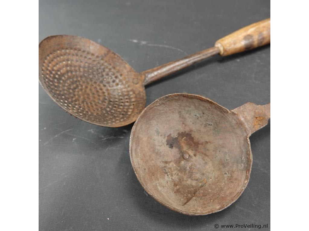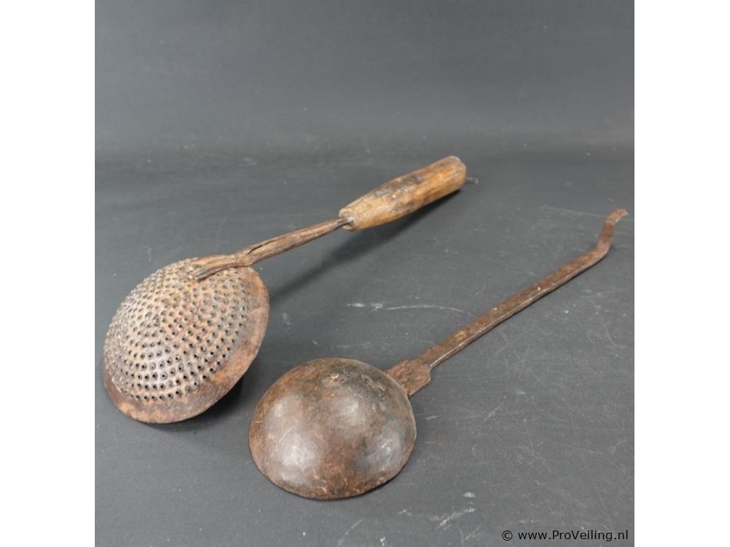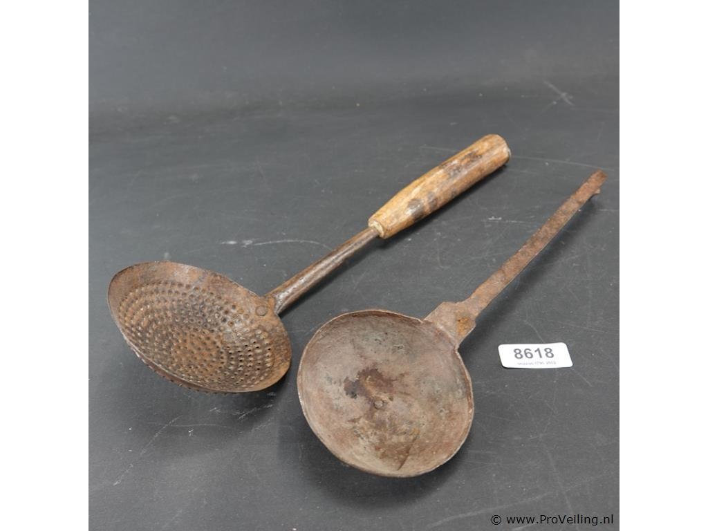 Antieke schuimspaan en antieke pollepel