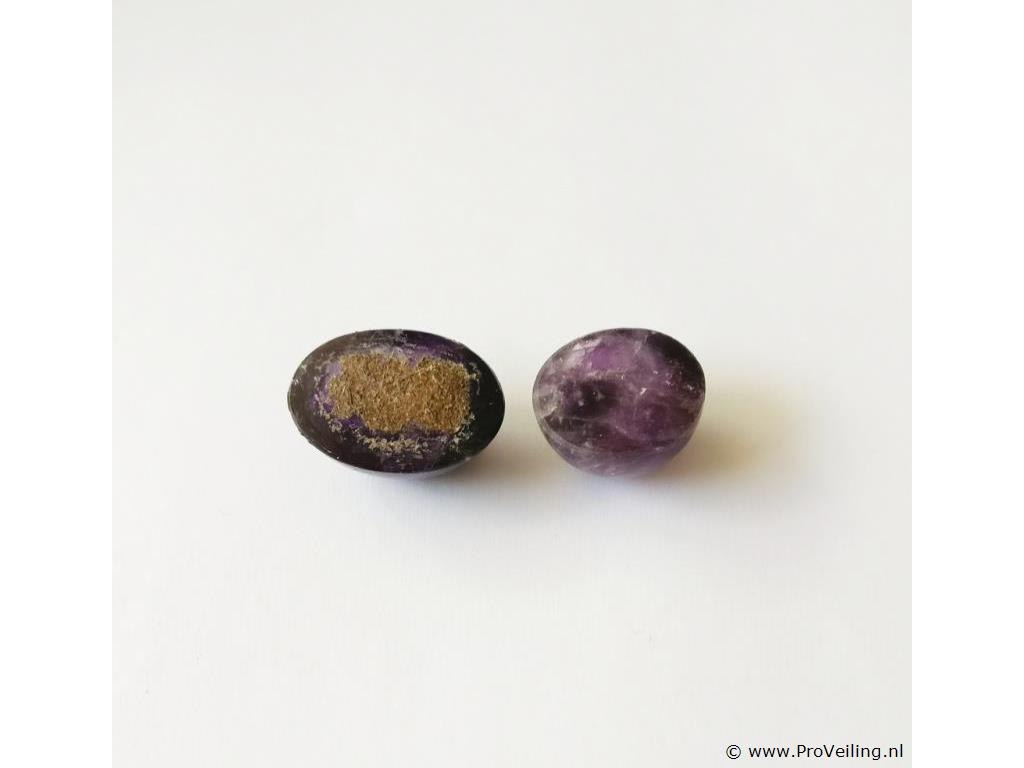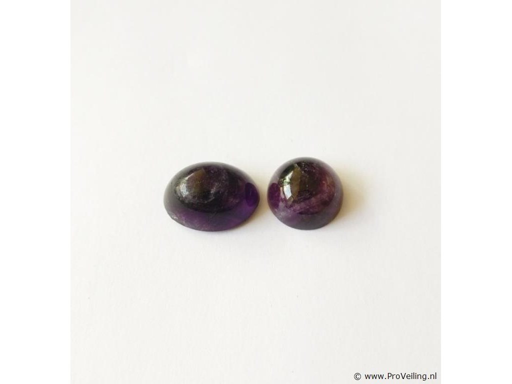 - Certificate No.: G89078604BE - Shape: Round and Oval Cabochon - Total Carat weight: 24.89 ct - No. of Stones: 2 - Color: Deep To Dark Purple - Treatment: Not mentioned in the report Additional information: Highly magnified pictures taken with a macro lens intended to show any imperfections less visible to the naked eye. Refer to the measurements for actual size Shipping information: Fully insured shipping within the EU for EUR 25. Combined shipping possible