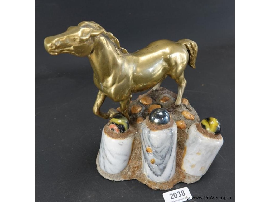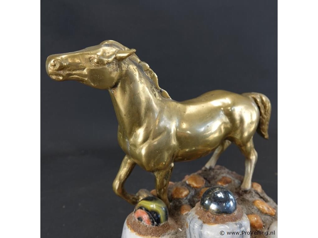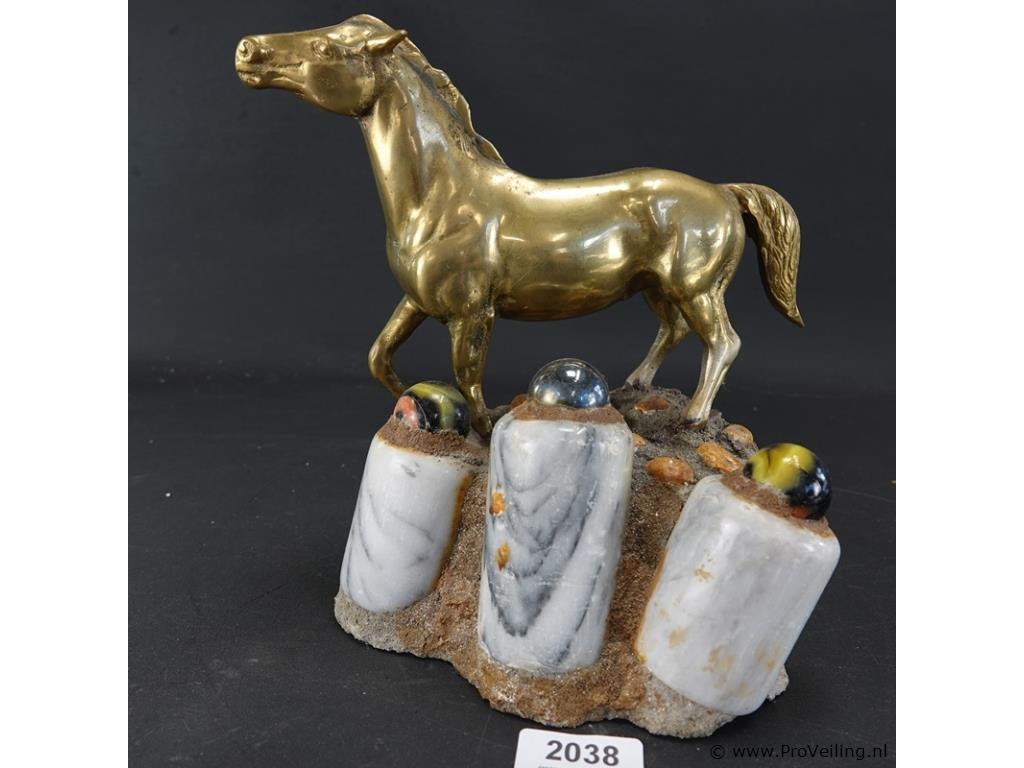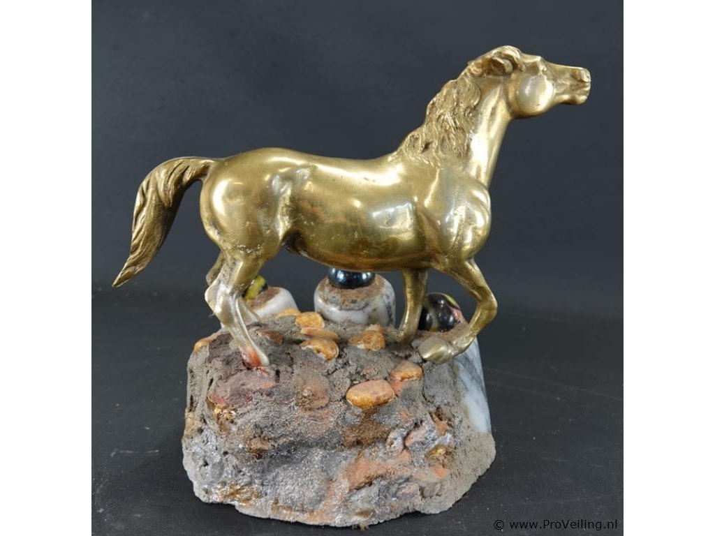 Koperen paard op stenen basement