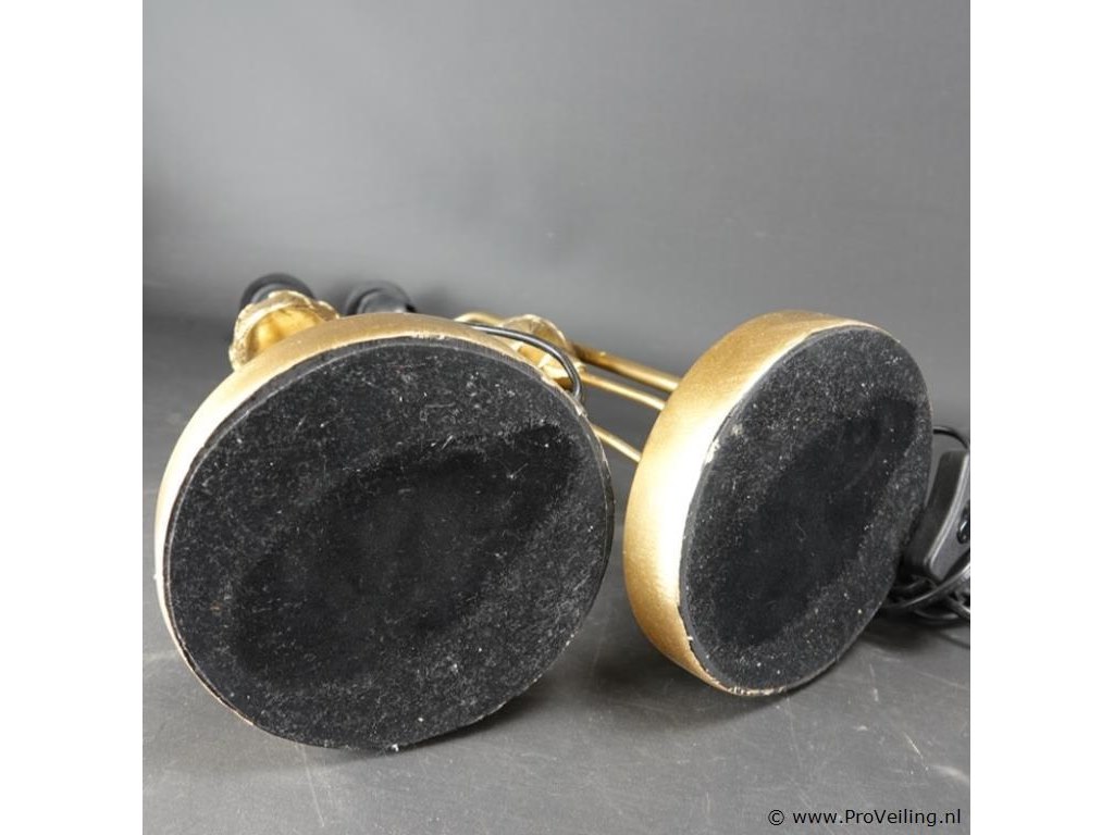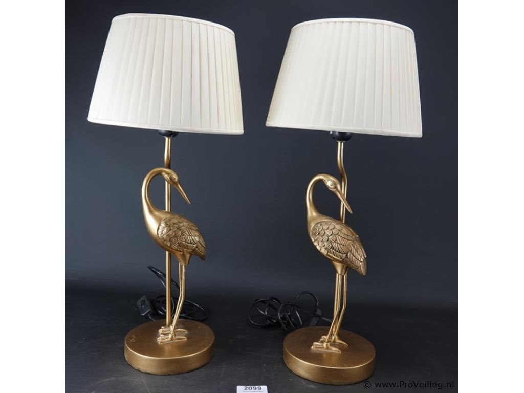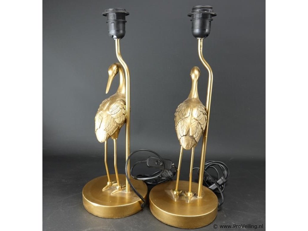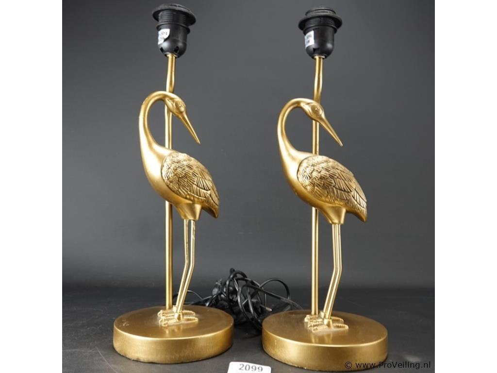 2 goud vergulde kraanvogels koper als lampvoet met kappen