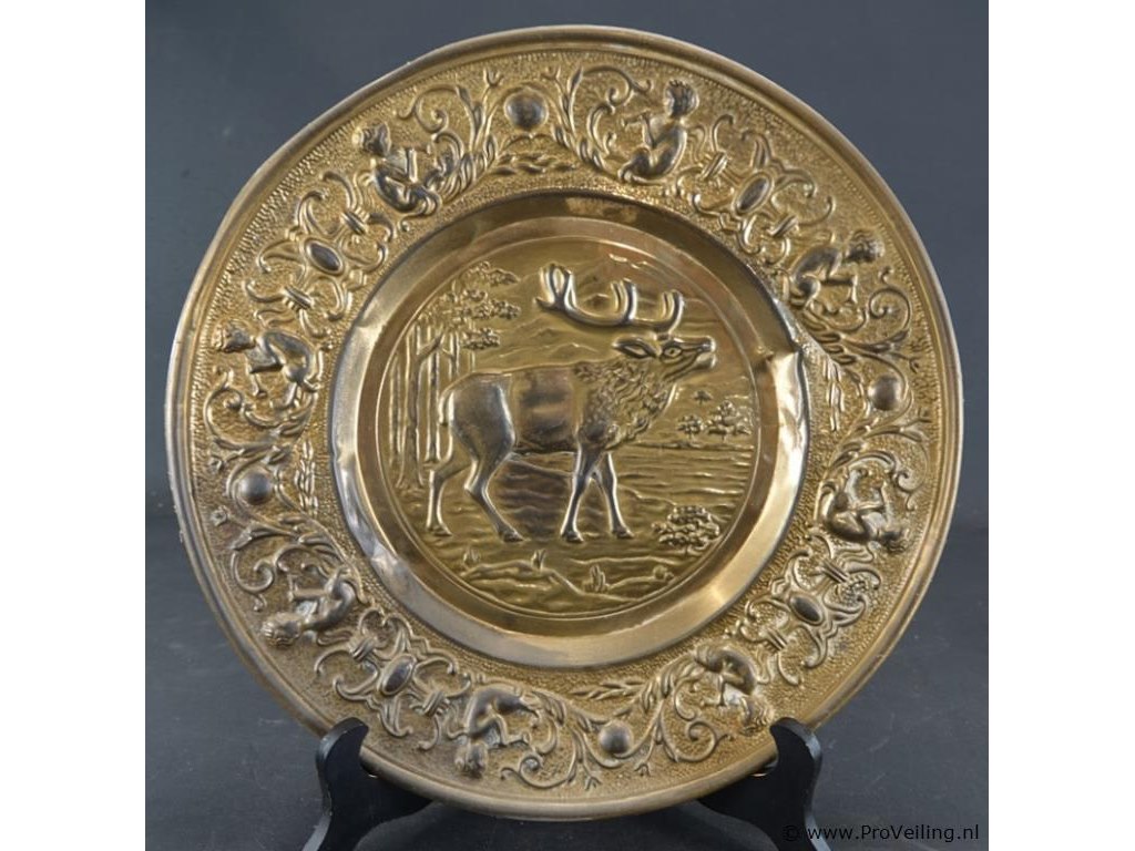 Koperen sierbord met gedreven decor