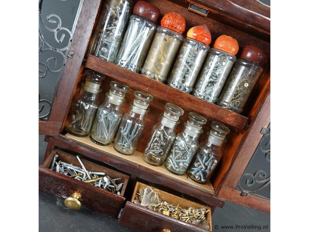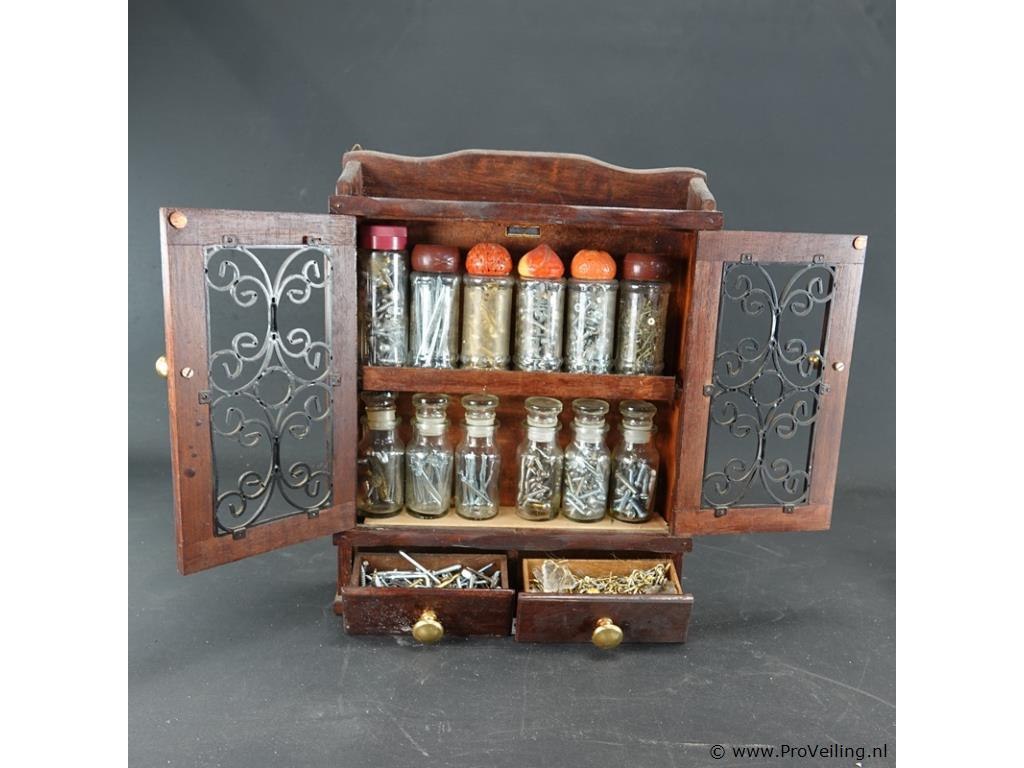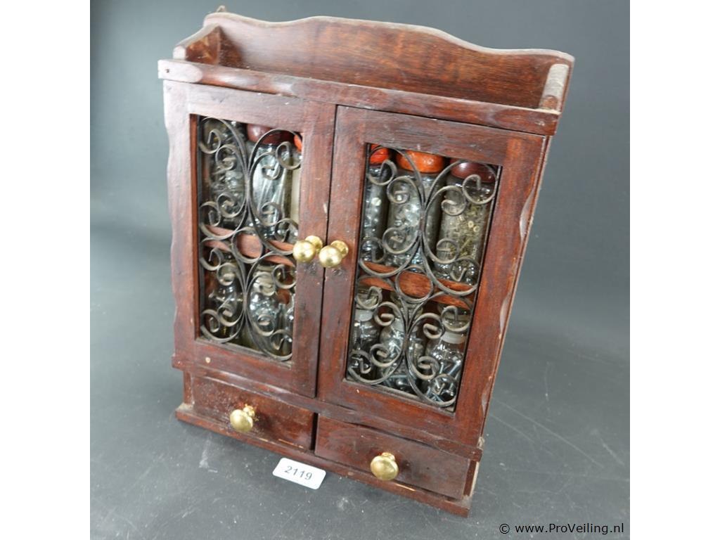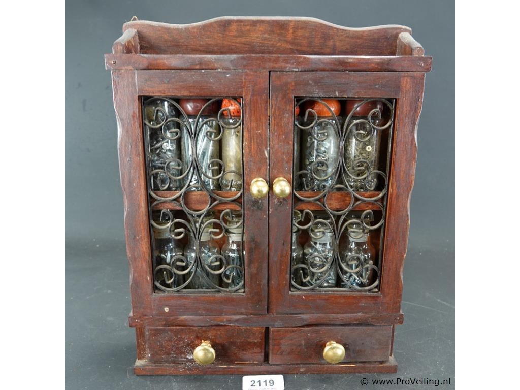 Klein houten kastje met inhoud