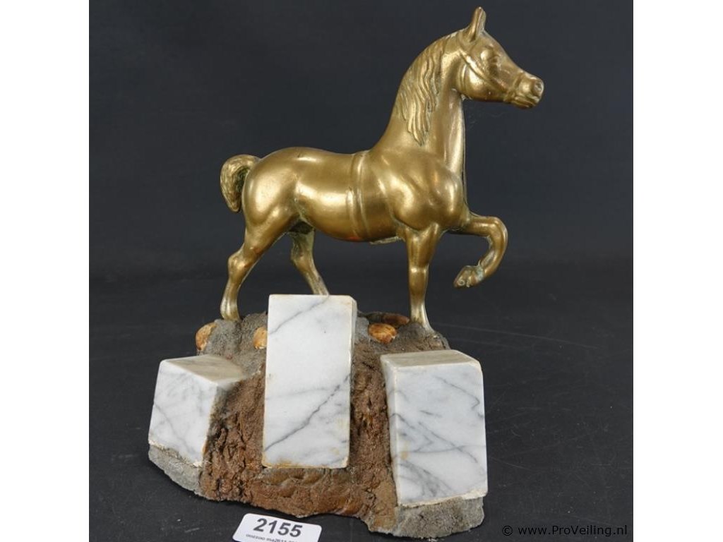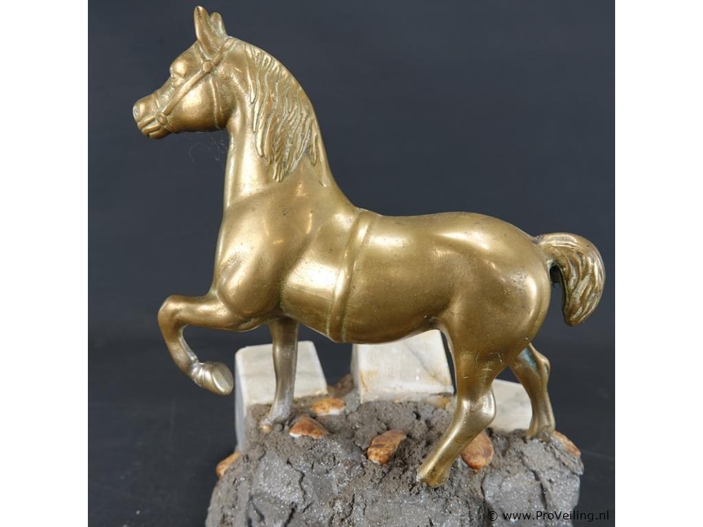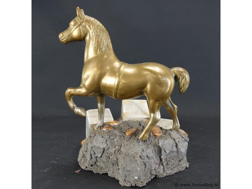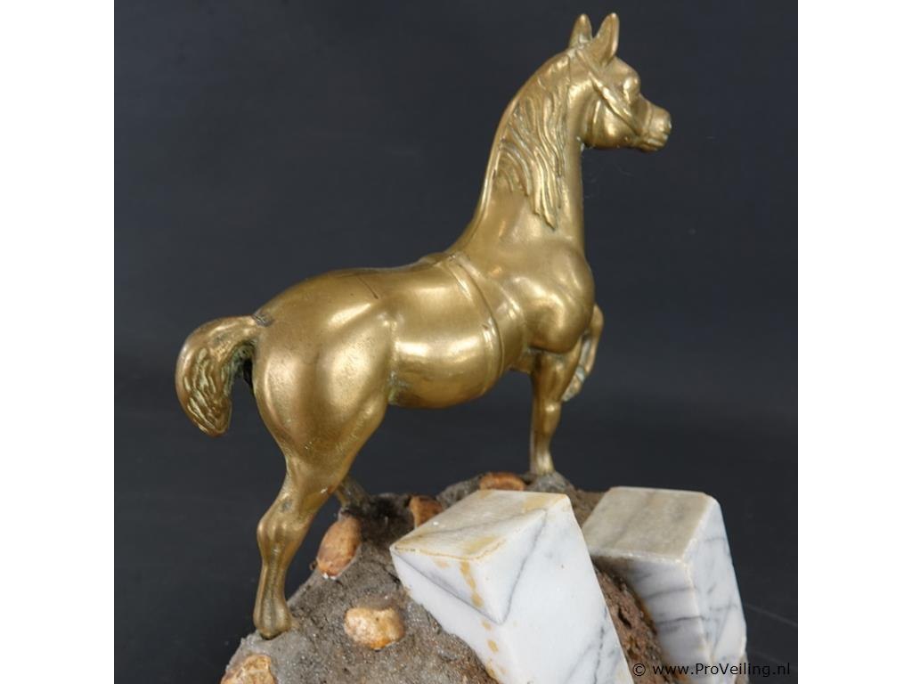 Koperen paard op stenen basement