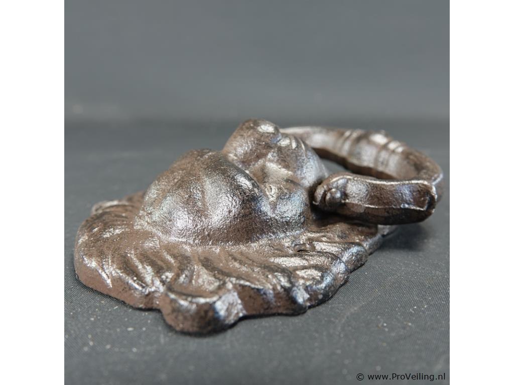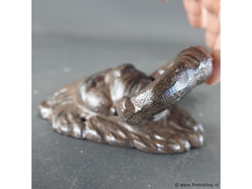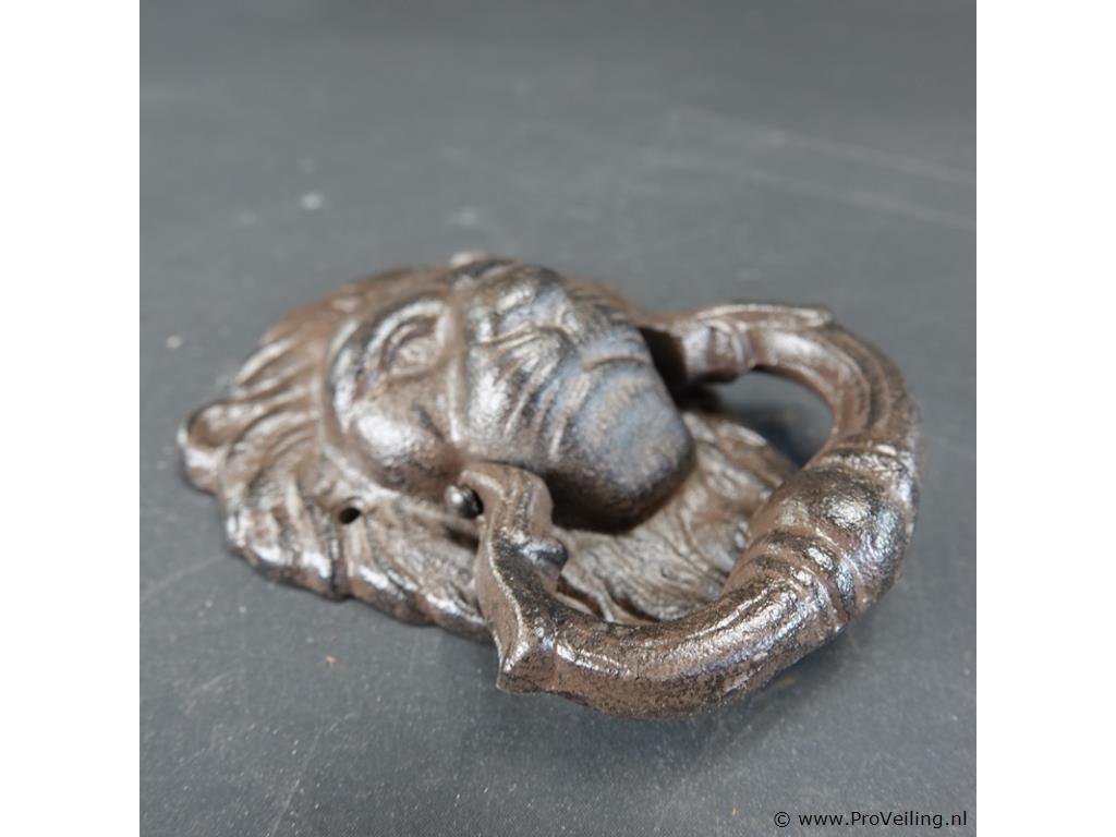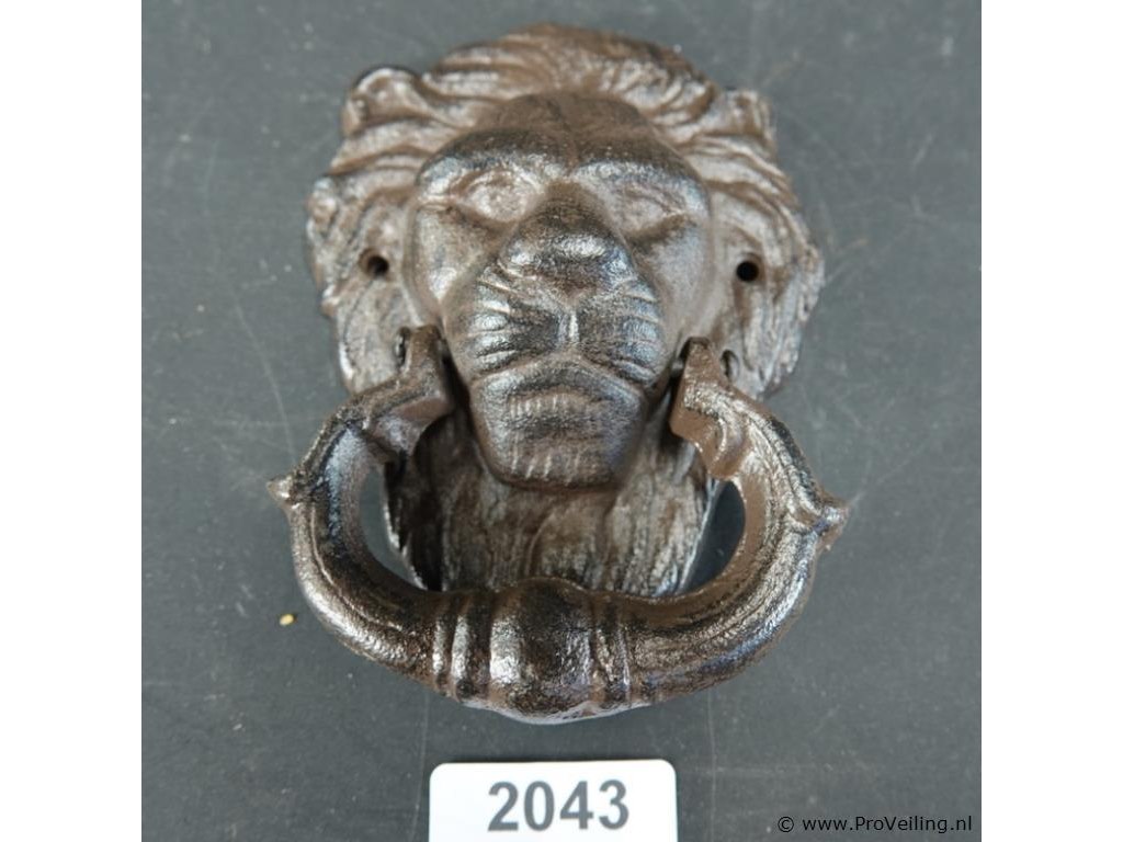 Ijzeren leeuwenkop als deurklopper