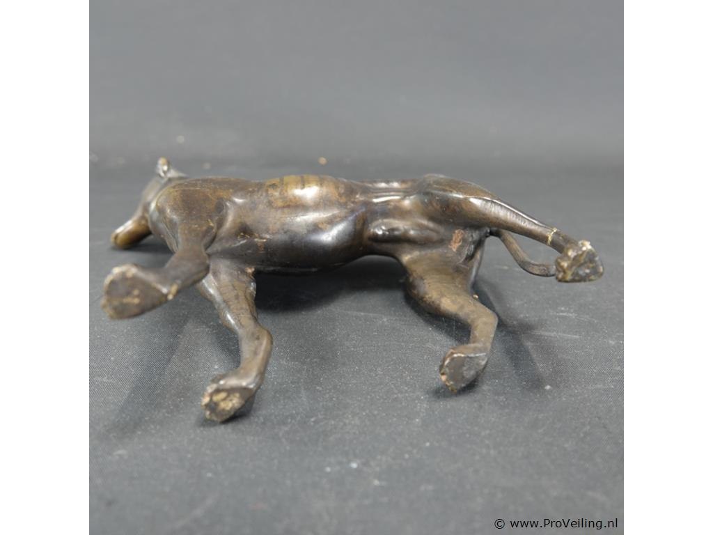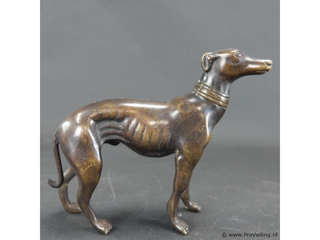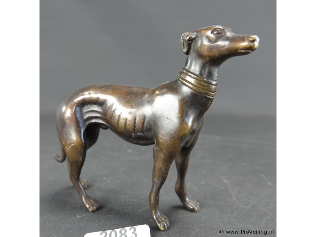 Zeer fraai vormgegeven bronzen beeld van een windhond