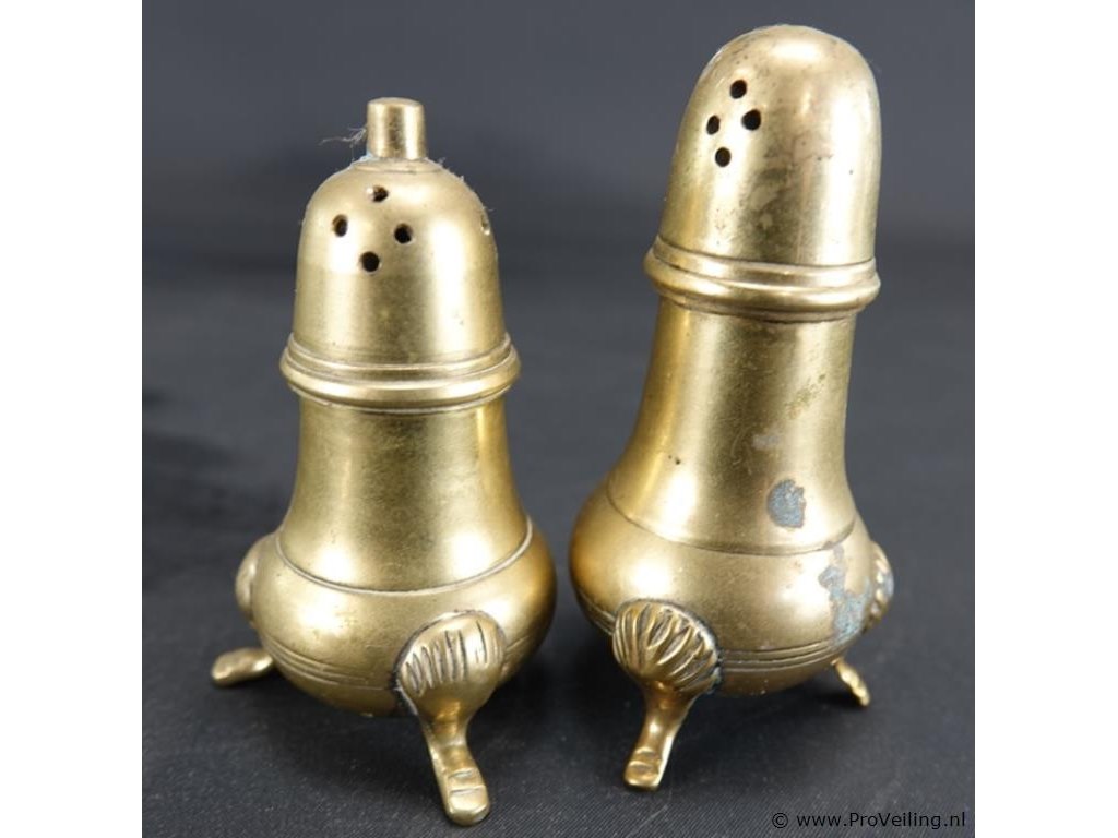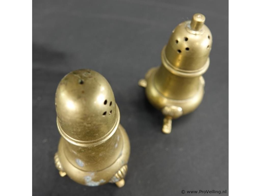 Antiek koperen peper- en zoutstel