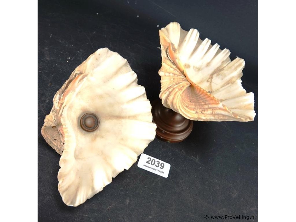 Schelp op messing stand en schelp zonder stand
