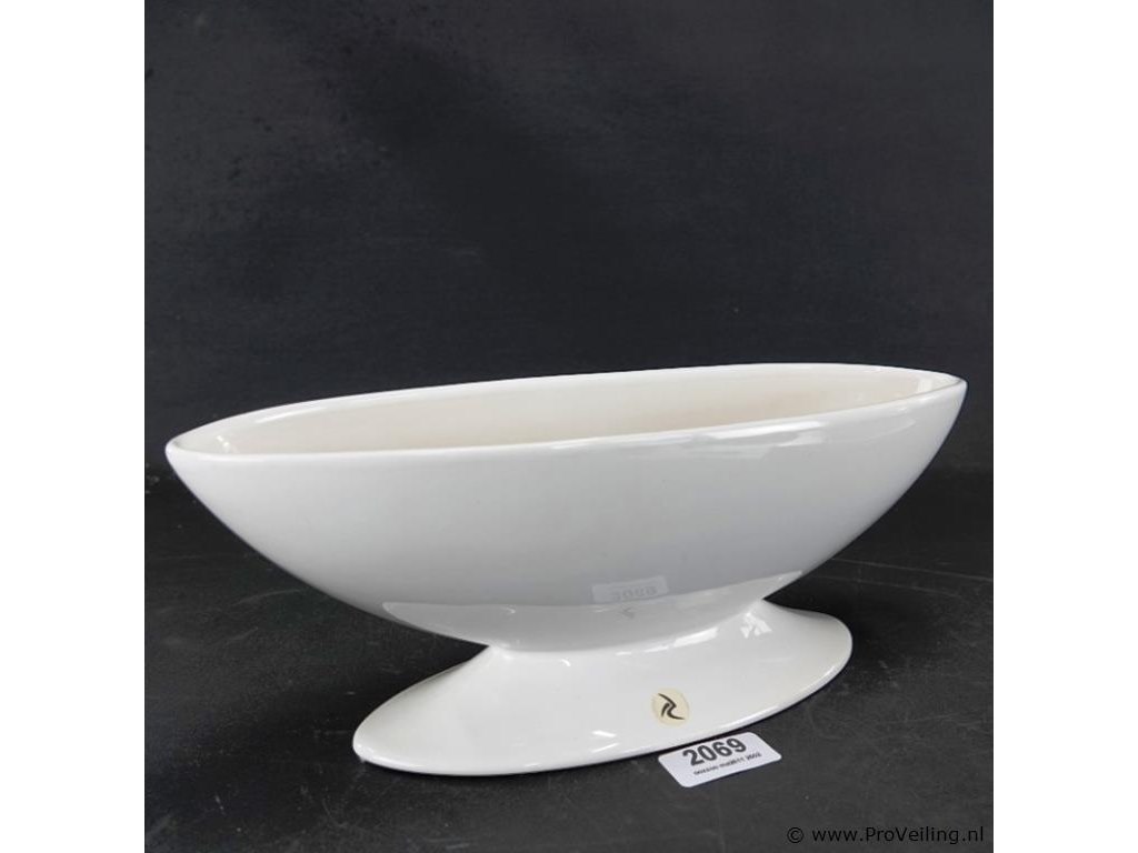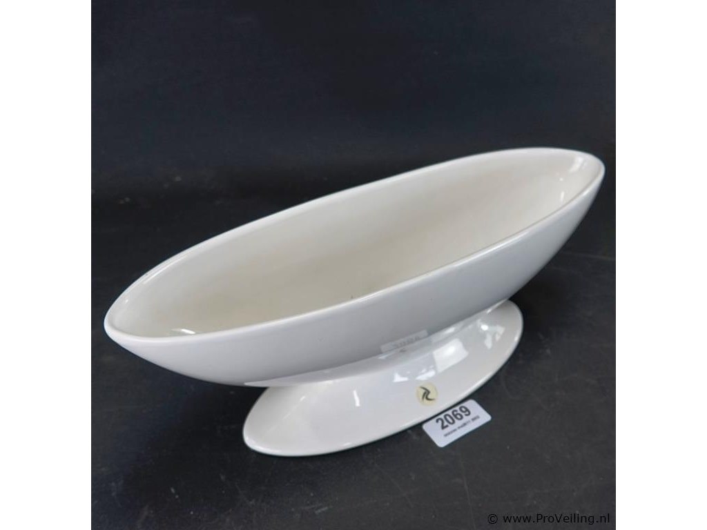 Porseleinen saucière. H14cm/B36cm/900Gr. Dit betreft een tijdens transport kwetsbaar product! Uw transportrisico voor deze kavel is zeker in combinatie met andere kavels hoog. Lees daarom a.u.b. ook de extra veilinginformatie voor deze veiling!.