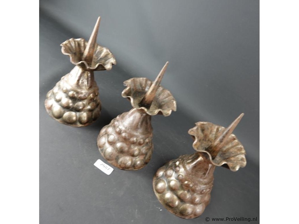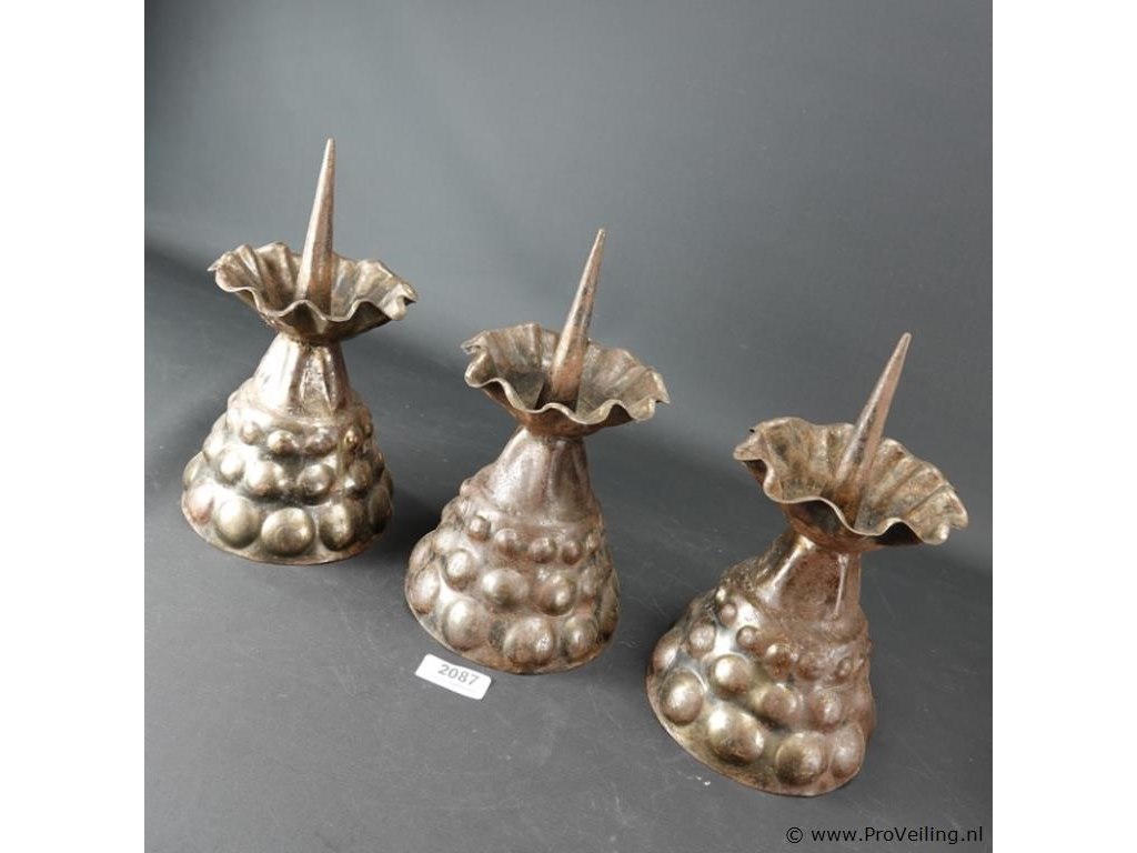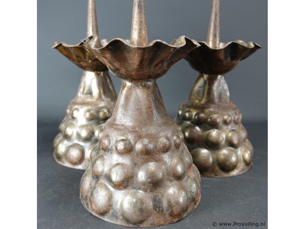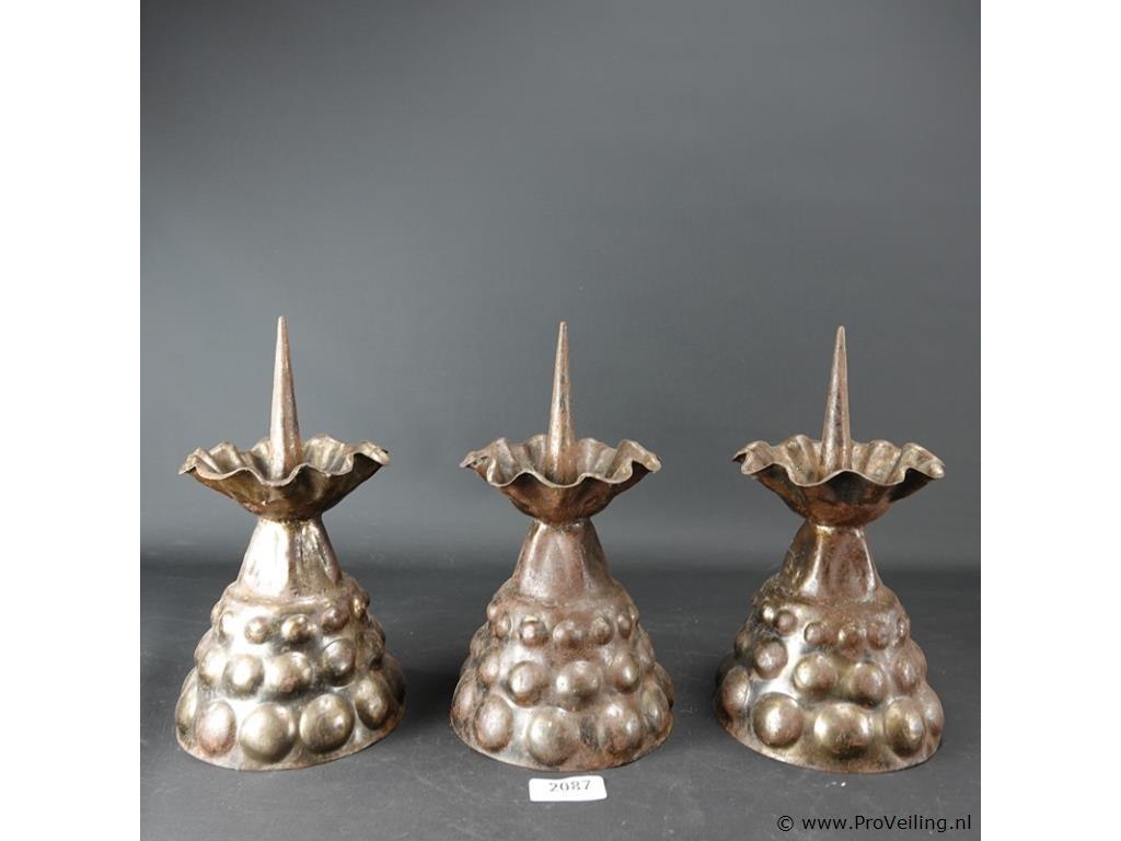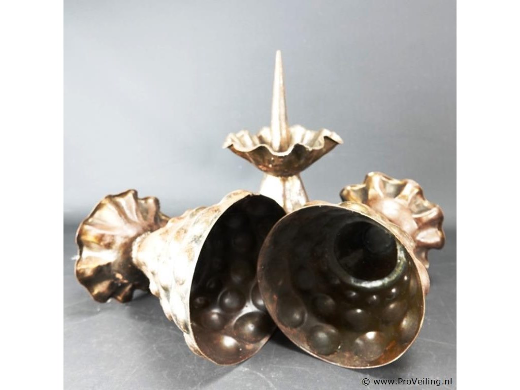 3 bijzonder gevormde messing kandelaren