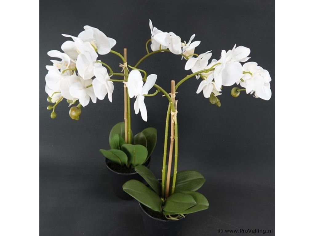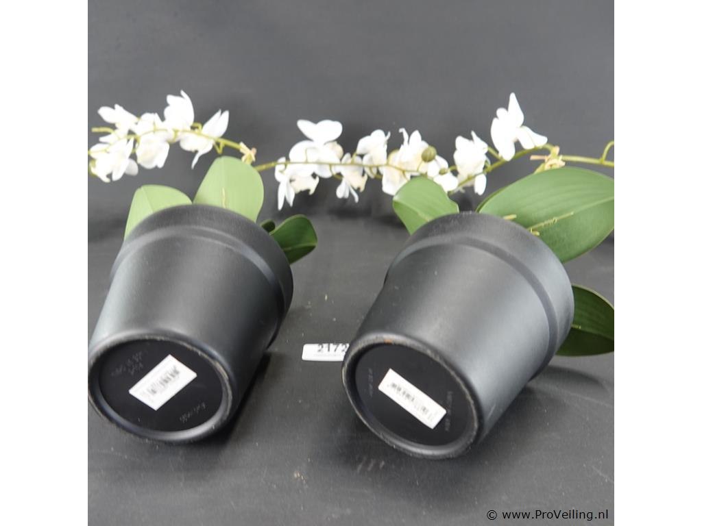 Paar kunst orchideeën. H52cm/1350Gr. Dit betreft een tijdens transport kwetsbaar product! Uw transportrisico voor deze kavel is zeker in combinatie met andere kavels hoog. Lees daarom a.u.b. ook de extra veilinginformatie voor deze veiling!.