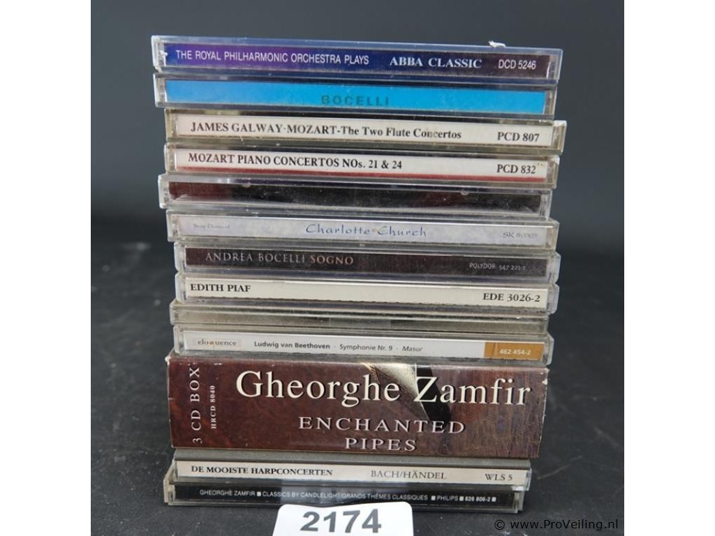 Verzameling CD's. H16cm/L13cm/B15cm/1550Gr. Dit betreft een tijdens transport kwetsbaar product! Uw transportrisico voor deze kavel is zeker in combinatie met andere kavels hoog. Lees daarom a.u.b. ook de extra veilinginformatie voor deze veiling!.