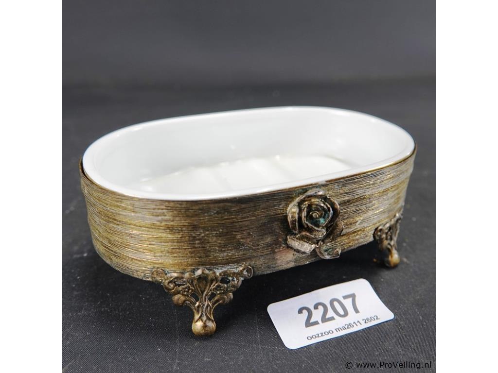 Keramische zeephouder in messing houder