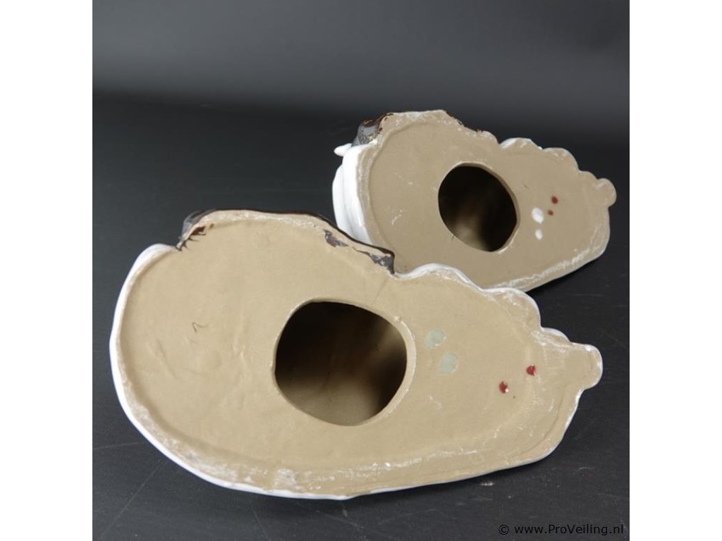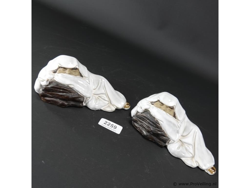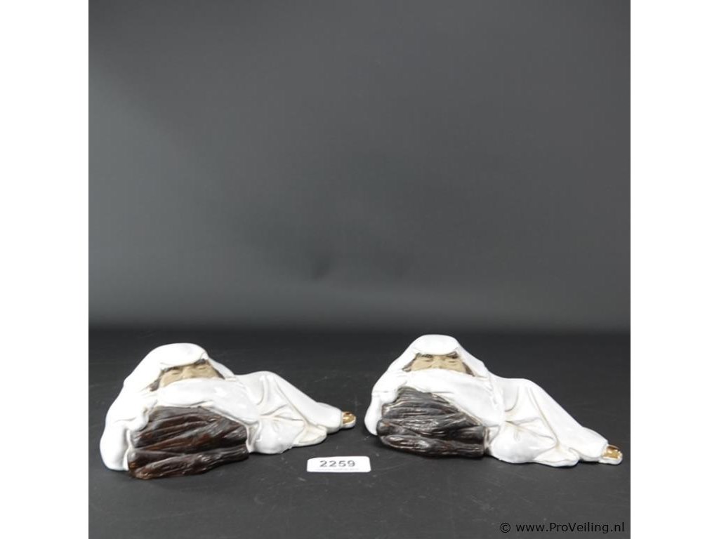 Paar gestileerde aardewerk Happy Boeddha's. L21cm/866Gr. Dit betreft een tijdens transport kwetsbaar product! Uw transportrisico voor deze kavel is zeker in combinatie met andere kavels hoog. Lees daarom a.u.b. ook de extra veilinginformatie voor deze veiling!.