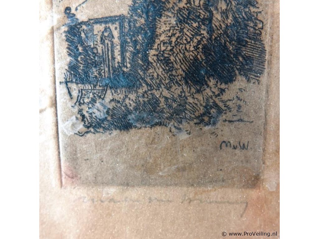 In passe-partout, achter glas en in houten lijst. H29cm/B19cm/430Gr. Dit betreft een tijdens transport kwetsbaar product! Uw transportrisico voor deze kavel is zeker in combinatie met andere kavels hoog. Lees daarom a.u.b. ook de extra veilinginformatie voor deze veiling!.