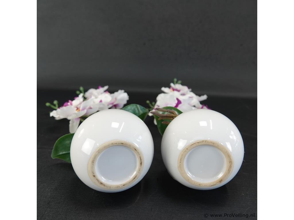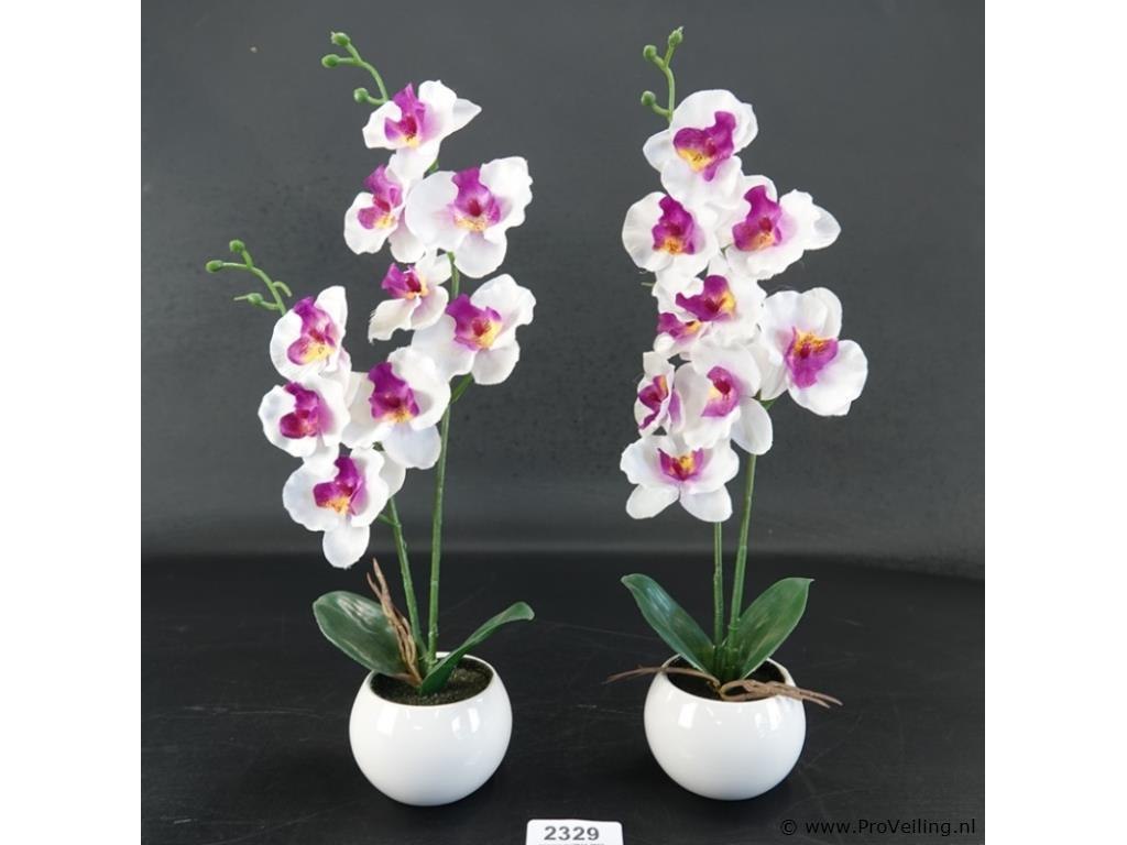 Paar orchideeën in porseleinen pot. H39cm/390Gr. Lees a.u.b. ook de extra veilinginformatie voor deze veiling!.