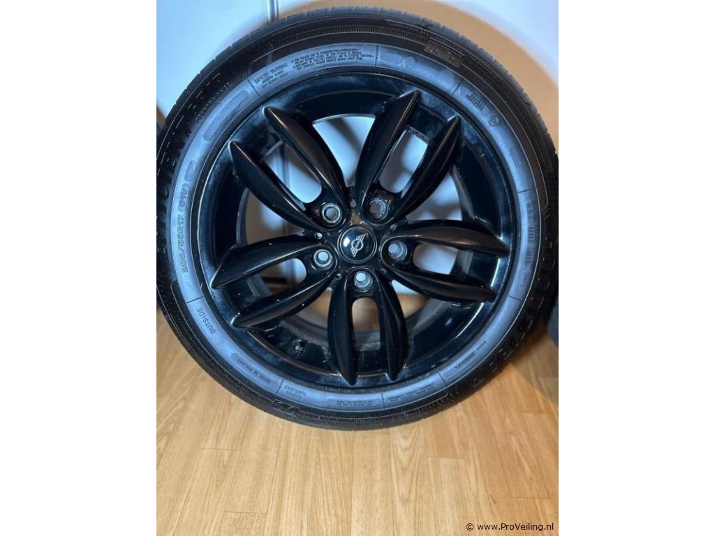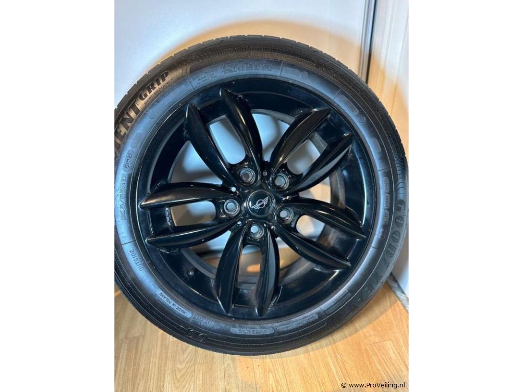 Aluminium velgenset, 17 inch: merk Mini velgen gebruikt / Good Year banden zijn nieuw; steekmaat 5x120; waarde 7J et50; geschikt voor Mini & VW Transporter. Aantal 1 set van 4 stuks.