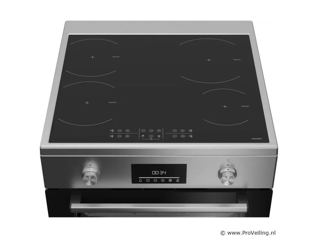 Design inductie fornuis. Aantal branders/kookzones: 4zone (s). Kleur van het product Zwart, Roestvrijstaal Type kookplaat. Inductiekookplaat zones Ingebouwd display: Ja Soort bediening: Draaiknop, Touch Beeldscherm type LED Soort materiaal (bovenkant) GlasErgonomie Zelfreinigend: Ja Verlichting binnenin: Ja Controle positie: Front / Top frontEnergieEnergie-efficiëntieklasse AAC invoer voltage220 - 230VAC invoer frequentie 50Hz Oven Onderverwarming: Ja Gewicht en omvang: Breedte 600mm, Diepte600mm, Hoogte85cm, Diepte verpakking 700mm, Gewicht56,5kg