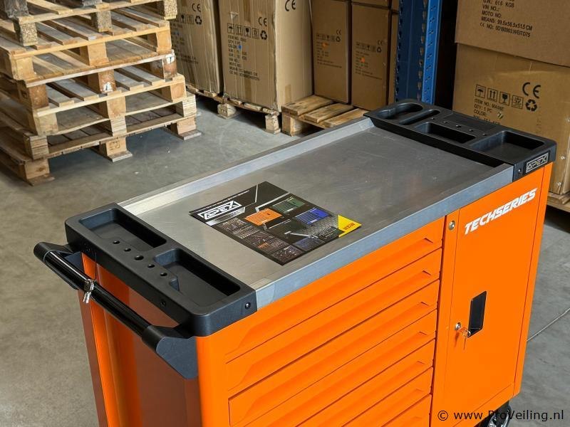 Afmetingen LxBxH: 110x45x88 cm Lengte zonder handgreep: 103 cm Hoogte zonder wieltjes: 72 cm Inhoud Lade 1: Steekdoppen + Ratstels Lade 2: Impact Steekdoppen + Bit Steekdoppenset Lade 3: Sleutels Lade 4: Schroevendraaiers Lade 5: Kruishoofd Schroefdraaiers + Tang Lade 6: Beitel + Hamers Lade 7: Bit Steekdoppenset Lade 1: Steekdoppen en Ratstels 10 stuks 1/4DR diepe steekdoppen: 4-5-6-7-8-9-10-11-12-13 mm 10 stuks 1/4DR steekdoppen: 5-5.5-6-7-8-9-10-11-12-13 mm 16 stuks 3/8DR steekdoppen: 8-9-10-11-12-13-14-15-16-17-18-19-20-21-22-24 mm 20 stuks 1/2DR steekdoppen: 10-11-12-13-14-15-16-17-18-19-20-21-22-23-24-25-26-27-30-32 mm 1 stuk 3/8 bougie steekdoppen: 21 mm 2 stuks 1/2 bougie steekdoppen: 21 mm, 16 mm 3 stuks universele gewricht 1/4 & 1/2 & 3/8 2 stuks verlengstang 1/4 2' & 4' 2 stuks verlengstang 1/2 5' & 10' 2 stuks verlengstang 3/8 3' & 6' 1 stuk bit houder 48 stuks 1/4 bit steekdoppen 24 stuks bit steekdoppen 3 stuks snelle ratstelhouder 1/4" & 3/8" & 1/2" Lade 2: Impact Steekdoppen en Bit Steekdoppenset 25 stuks impact steekdoppen: 8-9-10-11-12-13-14-15-16-17-18-19-20-21-22-23-24-25-26-27-28-29-30-31-32 mm 1 stuk universele gewricht 1/2 16 stuks bit steekdoppen 1 stuk F-bar 1 stuk glijdende T-bar 1/2 1 stuk 1/2dr*5 verlengstang Lade 3: Sleutels 5 stuks dubbele open sleutel: 8×9, 10×11, 12×13, 14×15, 16×17 8 stuks dubbele open sleutel: 6×7, 8×9, 10×11, 12×13, 14×15, 16×17, 18×19, 20×22 17 stuks combinatie sleutel: 8-9-10-11-12-13-14-15-16-17-18-19-20-21-22-24-27 mm 8 stuks dubbele offset ringsleutel: 6×7, 8×9, 10×11, 12×13, 14×15, 16×17, 18×19, 20×22 Lade 4: Schroevendraaiers 12 stuks schroevendraaiers: PH238 mm, PH075 mm, PH3150 mm, SL638 mm, SL375 mm, SL5100 mm, SL6100 mm, SL6150 mm, PH1100 mm, PH2100 mm, PH2150 mm, SL8150 mm 7 stuks precisie schroevendraaiers: PH0x50 mm, PH00x50 mm, PH000×50 mm, T5x50 mm, SL2.0x50 mm, SL2.5×50 mm, SL3.0x50 mm 6 stuks ele-schroevendraaiers: PH075 mm, PH1100 mm, PH2100 mm, SL375 mm, SL4100 mm, SL5.5125 mm Lade 5: Kruishoofd Schroefdraaiers en Tang 6 stuks kruishoofd schroefdraaiers: H2x100 mm, H2.5x100 mm, H3x100 mm, H4x150 mm, H5x150 mm, H6x150 mm 4 stuks 7" Franse kniptang: (recht buiten recht binnen gebogen buiten gebogen binnen) 3 stuks tang: 8' lange neus tang/8' diagonale kniptang/8' combinatie tang 1 stuk 10' D4 waterpomptang 1 stuk 10' vergrendelende tang Lade 6: Beitel en Hamers 18 stuks beitel gereedschapsset 2 stuks hamers 1 stuk koppelingsmeter Lade 7: Bit Steekdoppenset 102 stuks bit steekdoppen